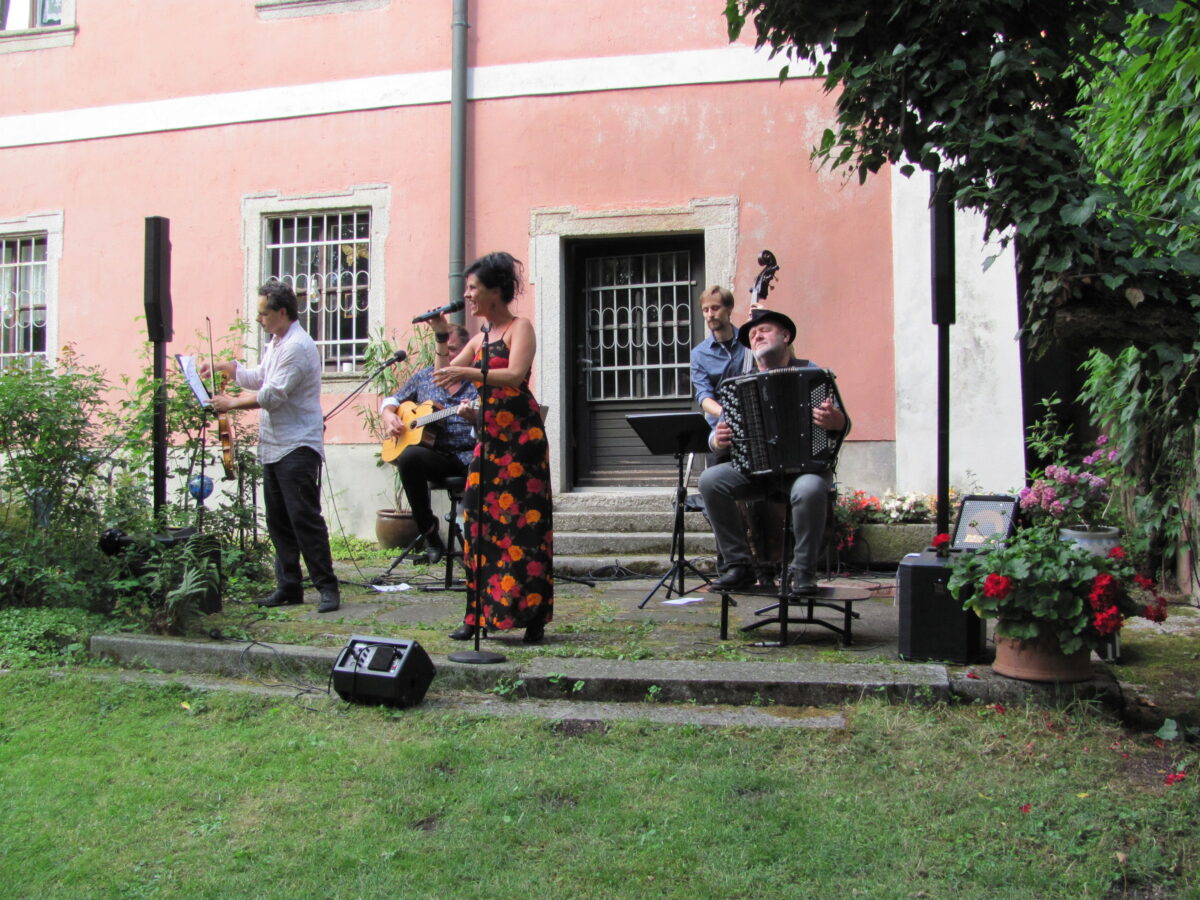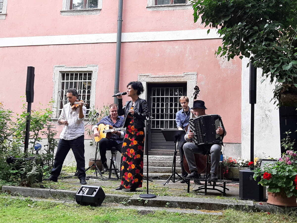 Das Ensemble “Grünes Blatt”, wie Foaie Verde zu Deutsch heißt, wirbelte feurige Rhythmen in den Wurzer Pfarrhof, als nähme das Ambiente unter den Laubkronen der historischen Bäume die Musiker und die Sängerin selbst gefangen. Mit musikalisch aufgeladener Power lieferten die fünf Künstler den lebendigen Beweis für die Zusammengehörigkeit stiftende Kraft der Musik über Ländergrenzen hinweg.