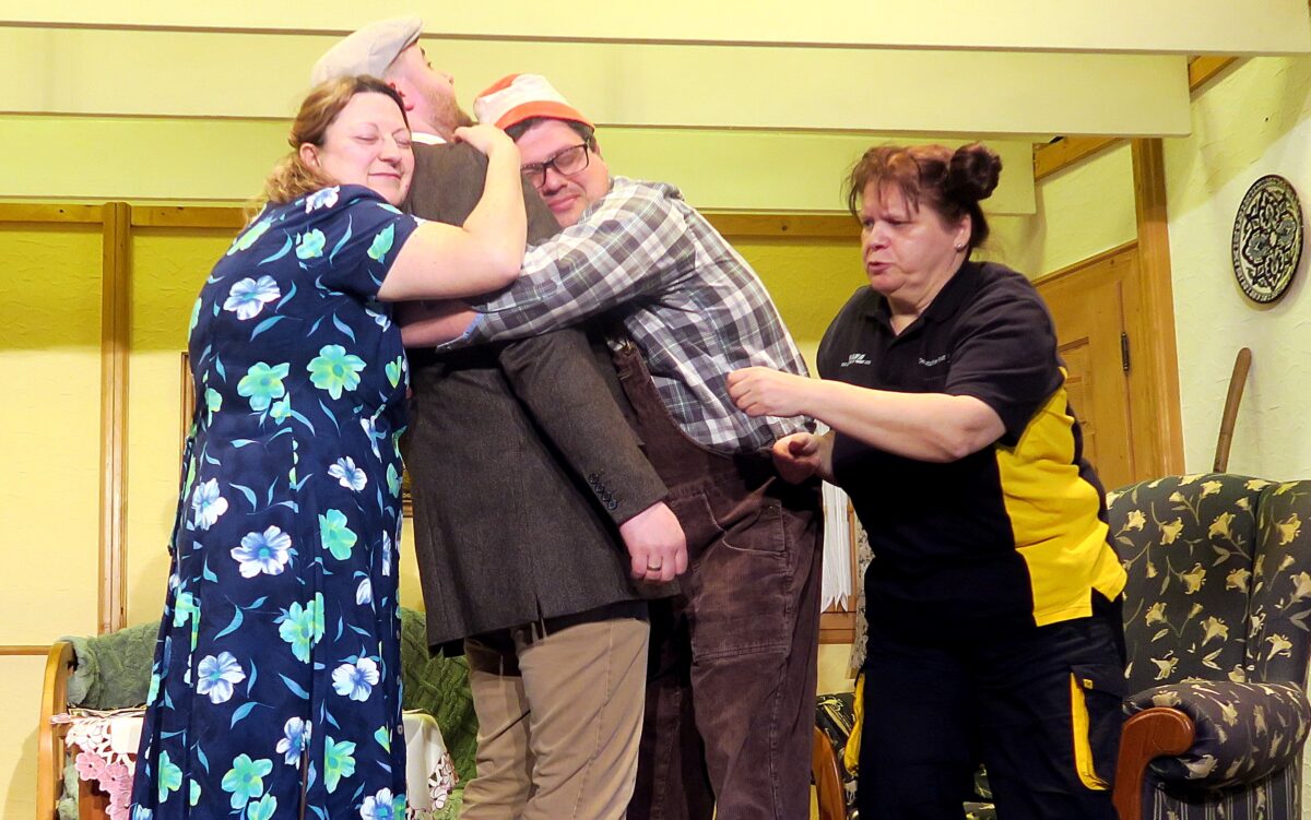 Die Darsteller waren von Beginn an voll in ihren Rollen und rissen das Publikum mit. Immer wieder brandete spontaner Beifall auf. Besonders Penner Xaver sorgte für Szenenapplaus mit seinem Auftritt: „Ich bin das Phantom der Oma – wer Wind sät, wird Windradl’n ernten.“ Auch die liebevoll eingebauten Seitenhiebe auf Nachbarorte kamen bestens an. Mit viel Tempo, pointierten Dialogen und herzhaften Sprüchen führte das Ensemble durch den Abend. Da wurde ein Kompliment auch schon einmal so formuliert: „Du bist der Schlag meines Herzens und der Blinddarm meines Dickdarms.“ Spätestens hier gab es kein Halten mehr im Publikum.