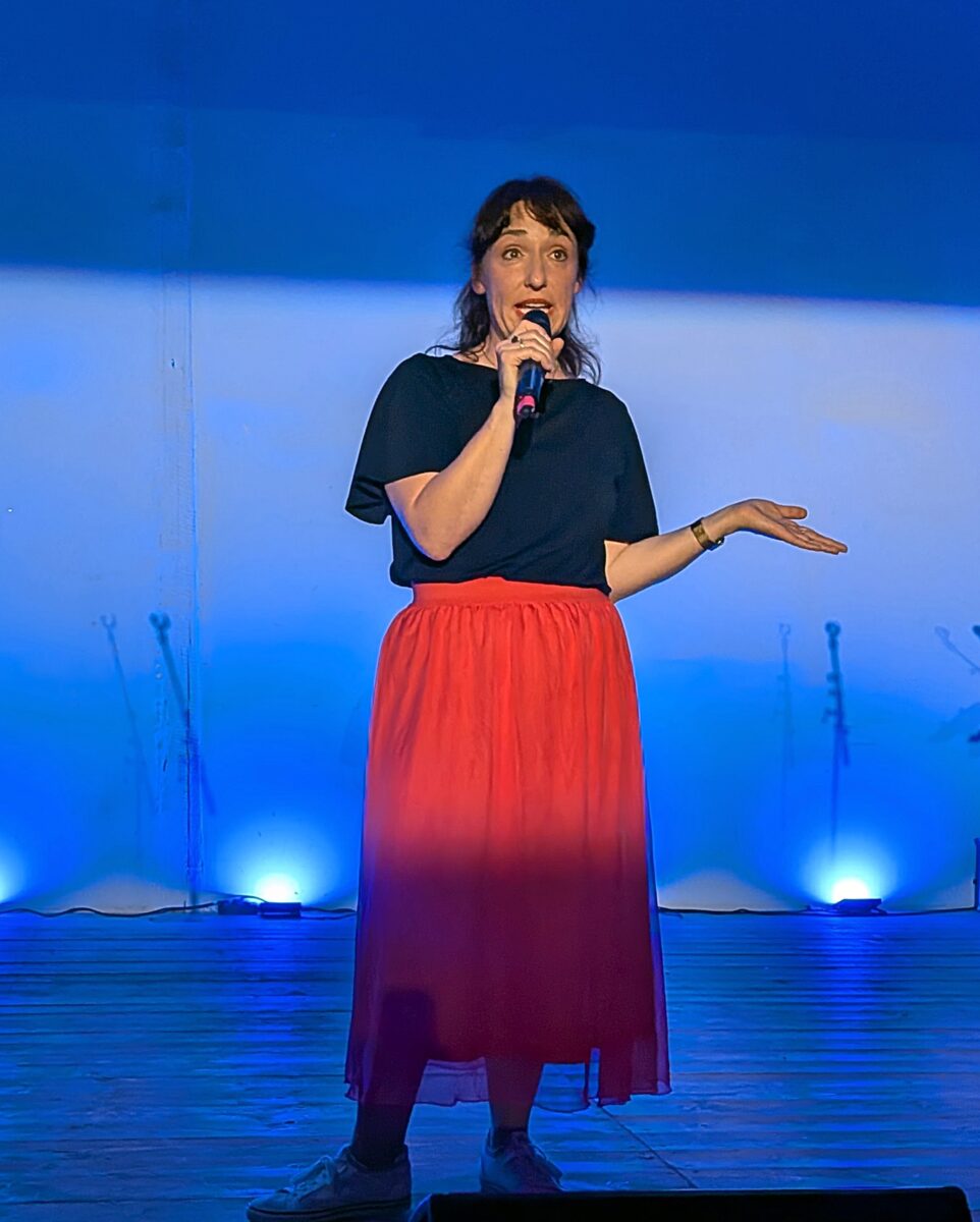 Die weibliche Hauptrolle an diesem Abend übernahm die Münchnerin Christl Sittenauer. Das Ensemblemitglied der Münchner Lach- und Schießgesellschaft ist in der Comedy-Szene („Ladies Night“, „Kabarett aus Franken“) schon lange keine Unbekannte mehr. Sie schildert prägende Erlebnisse aus ihrer Kindheit, erzählt vom Urlaub im Elternhaus, interagiert gerne mit Touristen in München und nimmt auch beim Tabuthema Sex kein Blatt vor den Mund. Sittenauer setzt ihre Mimik gekonnt ein und analysiert humorvoll und authentisch. Urkomisch ist die Geschichte von der 86-jährigen Rita, die oben ohne im Freibad ihren eigenen Schwimmstil verkörpert.