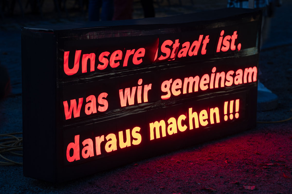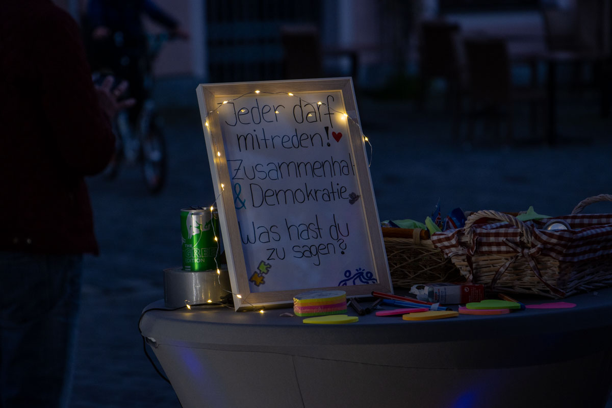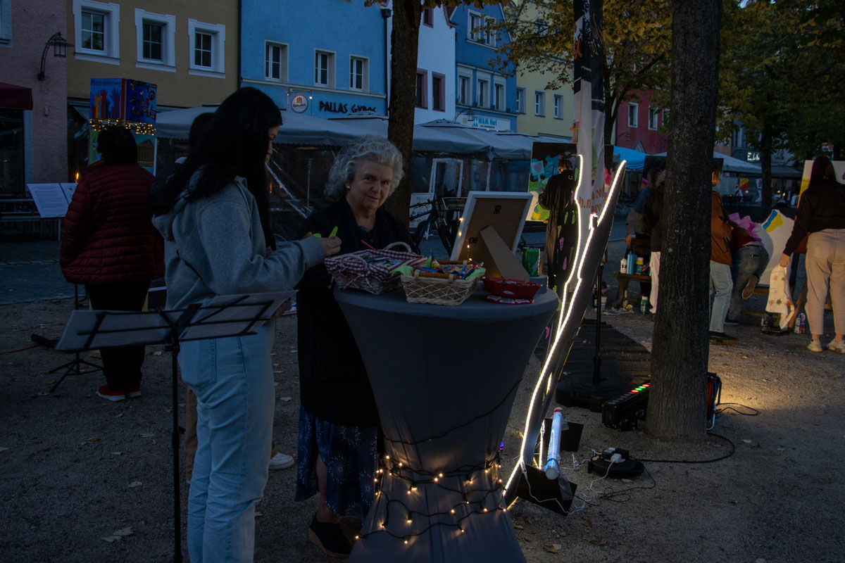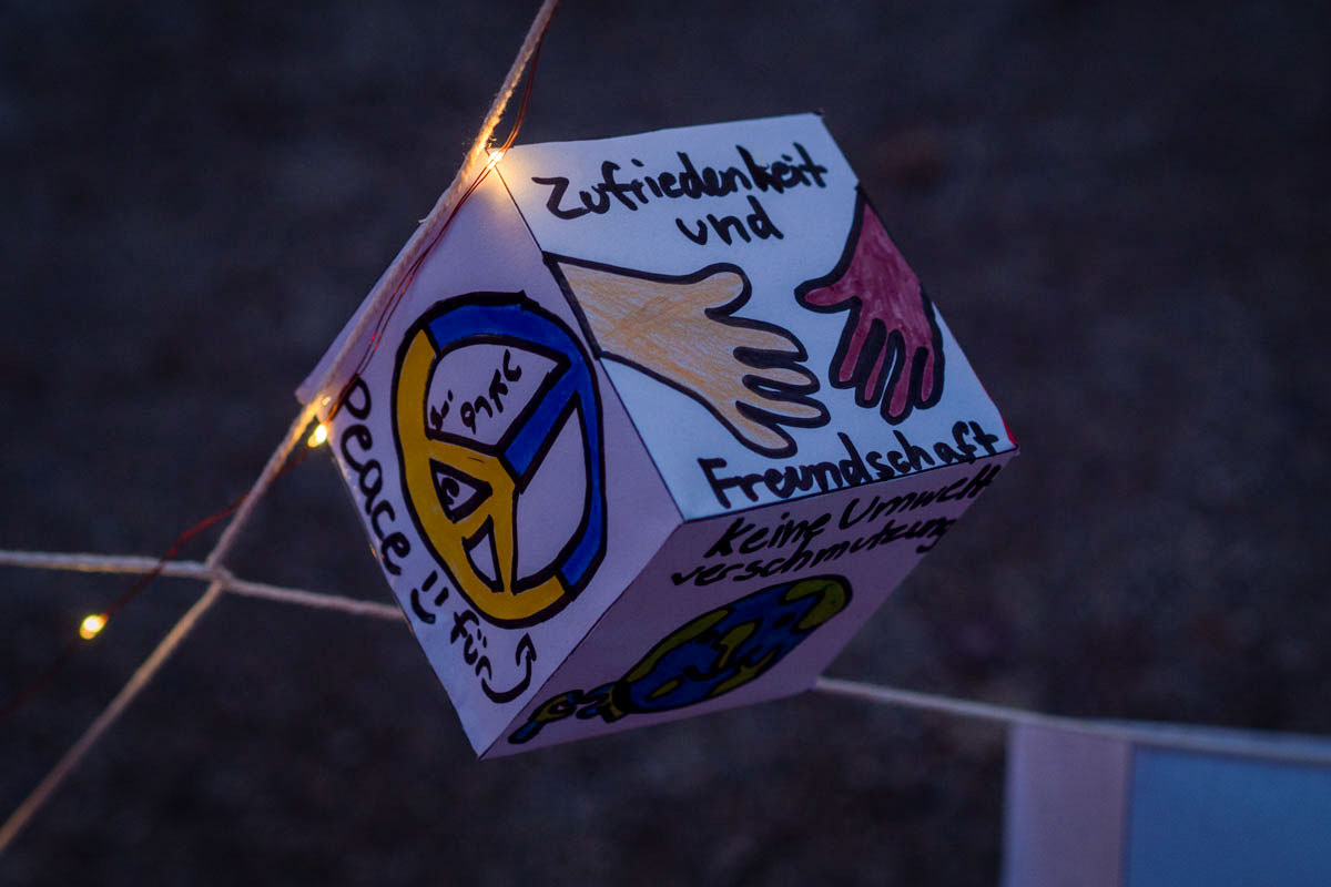 In Weiden stellten sich mehr als 20 Schulen, Organisatoren und Vereine die Fragen: „Was verbinden wir mit den Grundwerten unserer Gesellschaft, wie Solidarität, Frieden oder Respekt? Welche Rolle spielen sie in unserem Alltag?“ Ihre Ergebnisse haben sie kreativ in Kunstwerken festgehalten und in der Allee hinter dem Alten Rathaus ausgestellt. Um ihren Antworten eine besondere Note zu verleihen, wurden in den Kunstwerken leuchtende Elemente eingebaut.