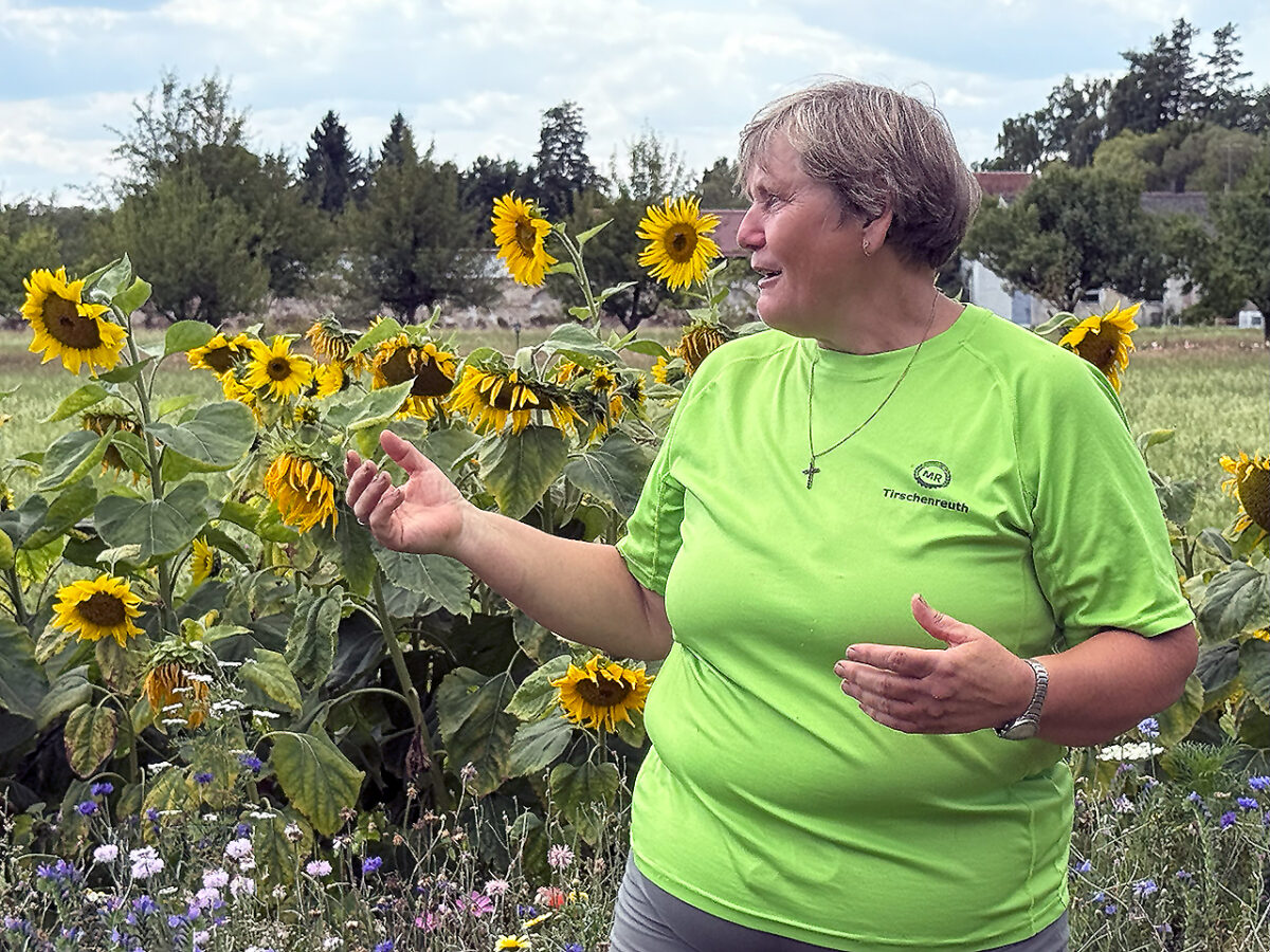 Unweit der Meditationsbank wachsen Kosmeen, Kornblumen, Königskerzen. „Das ist kein Deko-Garten“, betont Monika Keck vom Maschinenring, die mit ihren Kolleginnen den Garten in Schuss hält.
