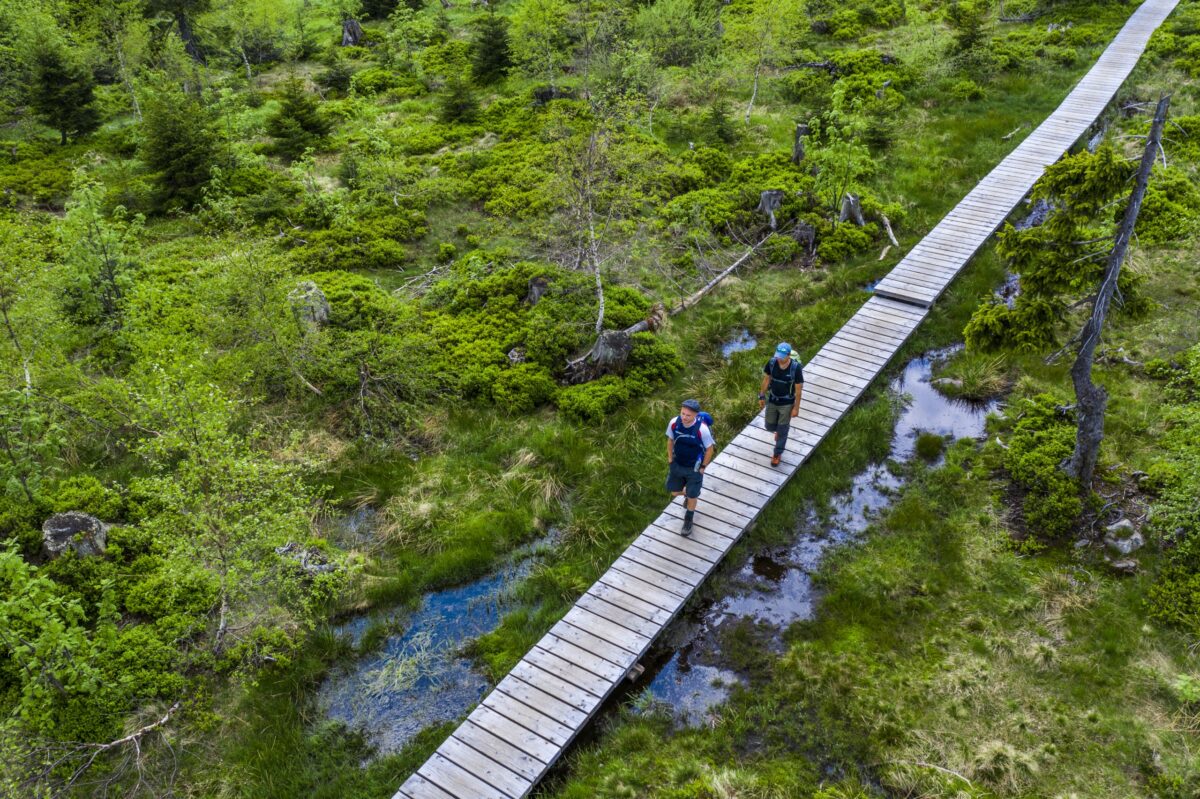 Nachhaltig auf Schritt und Tritt: Urlauberinnen, die den Bayerischen Wald hautnah erleben möchten, entdecken die abwechslungsreiche Natur am besten zu Fuß auf einem der zahlreichen Wanderwege. Insgesamt stehen rund Hunderte Kilometer beschilderte Wander-wege zur Verfügung. Auf begeisterte Wanderer und Wanderinnen warten über 130 imposante Berge, die eine Höhe von mehr als 1.000 Metern aufweisen. Das geht nur hier: an einem Tag über acht Tausender wandern.