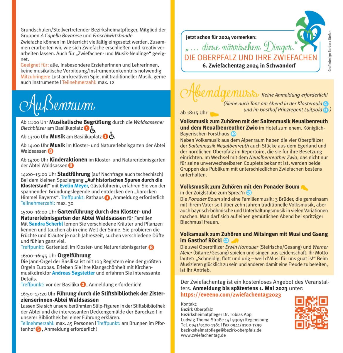 Bei Fragen steht das Büro der Bezirksheimatpflege unter: bezirksheimatpflege@bezirk-oberpfalz.de zur Verfügung. Der Eintritt ist frei. Weitere Informationen sind auf der Website des Zwiefachentags verfügbar.