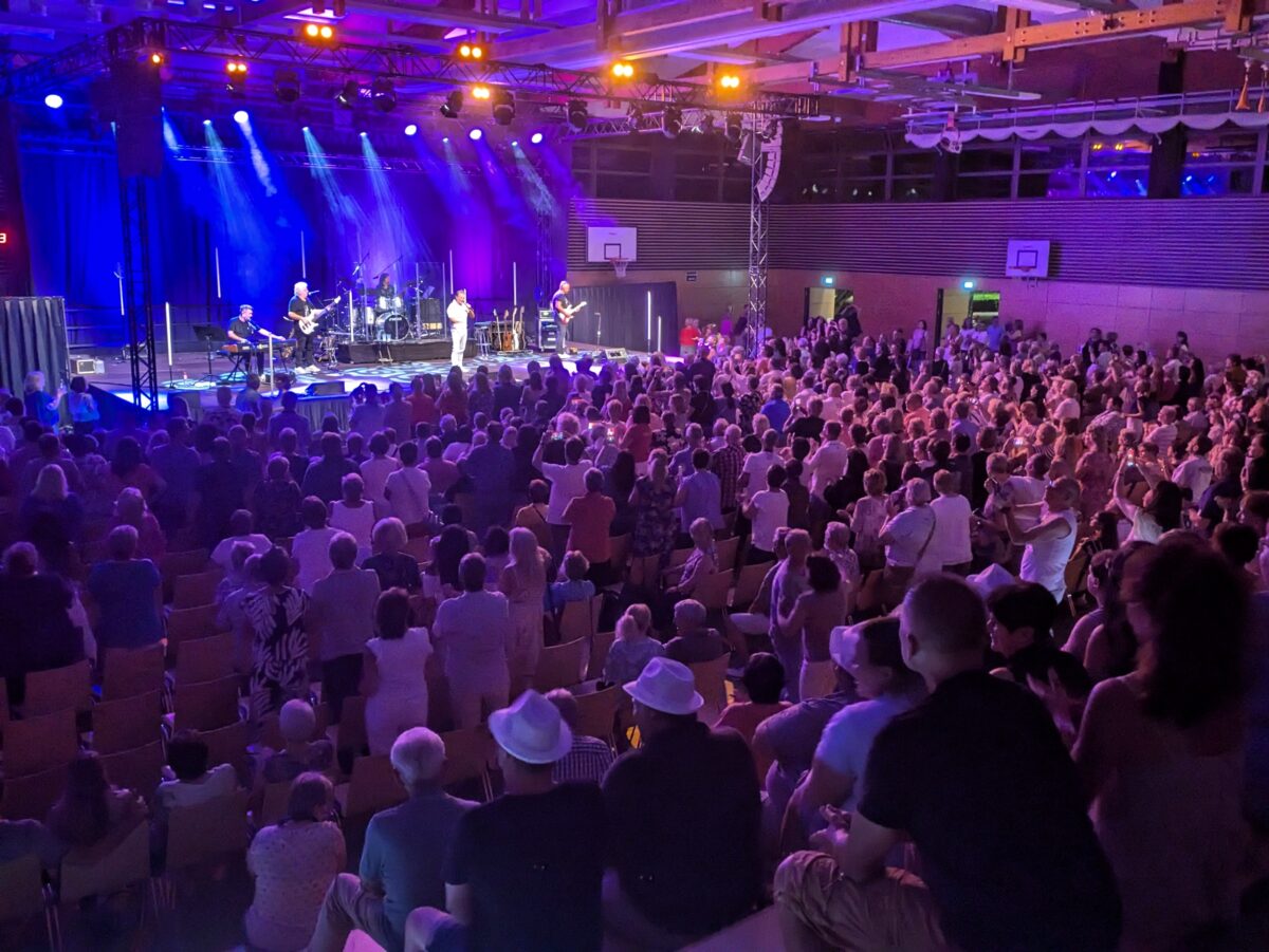 Von Anfang an wurde getanzt, geklatscht und kräftig mitgesungen. Ob bei „Über Rhodos küss ich Dich“, „Mit den Augen einer Frau“, „Das kleine Haus am Meer“ oder „Dort auf Wolke Sieben“, die Fans kamen schnell auf Betriebstemperatur. Bandleader Friedl Würcher war immer auf Tuchfühlung mit dem Publikum und die Soloeinlagen seiner Mitstreiter waren musikalisch aus dem oberen Regal. Zum Hit des Abend avisierte der neue Nockis Ohrwurm „Marie, ich vergess dich nie“ der kurz vor der Pause und als letztes Lied bei der frenetisch geforderten Zugabe zum Besten gebracht wurde.