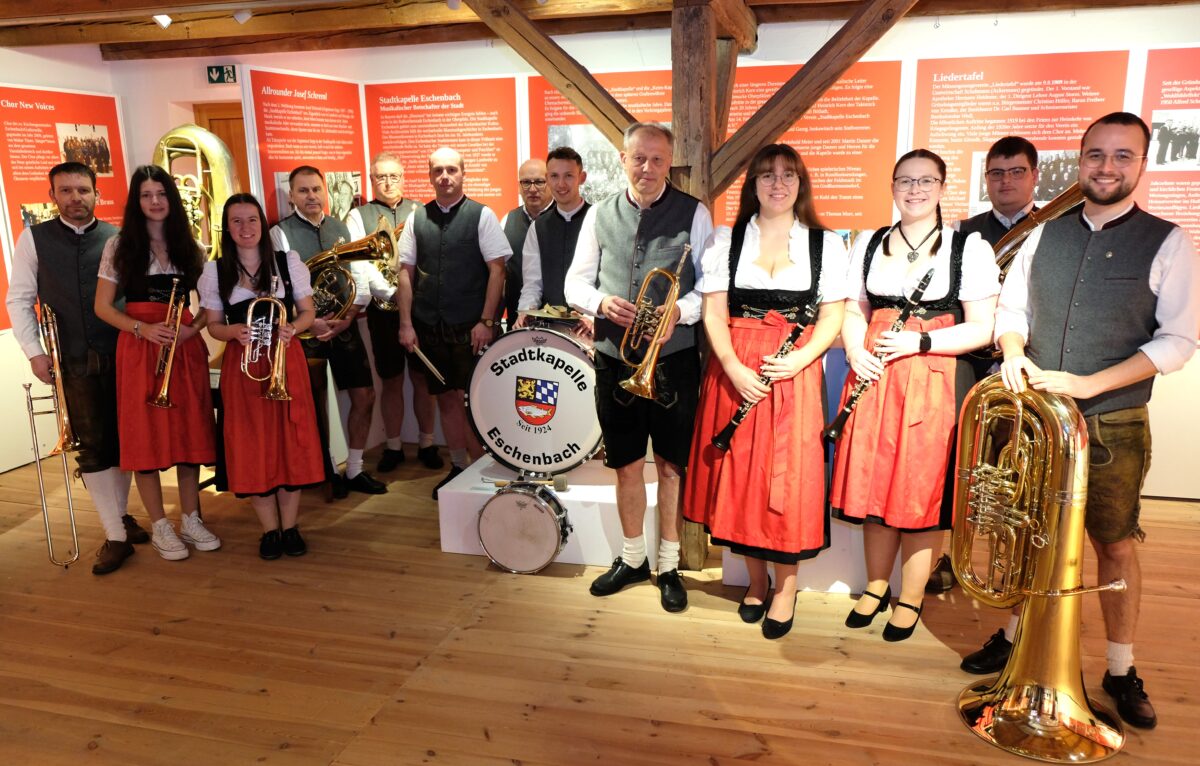 Eine erfolgversprechende musikalische Zukunft nahm ihren Lauf. Ein Glücksfall für das Eschenbacher Blasmusikwesen. 1924 mündete das begeisterte Musizieren in die Gründung einer weiteren Bläsergruppe mit Gründervater Leopold Schreml. Die Stadtkapelle war geboren, an lernwilligen jungen Musikern bestand kein Mangel. Es lockten Anerkennung, Trinkgeld, Brotzeit und eine Maß Bier.