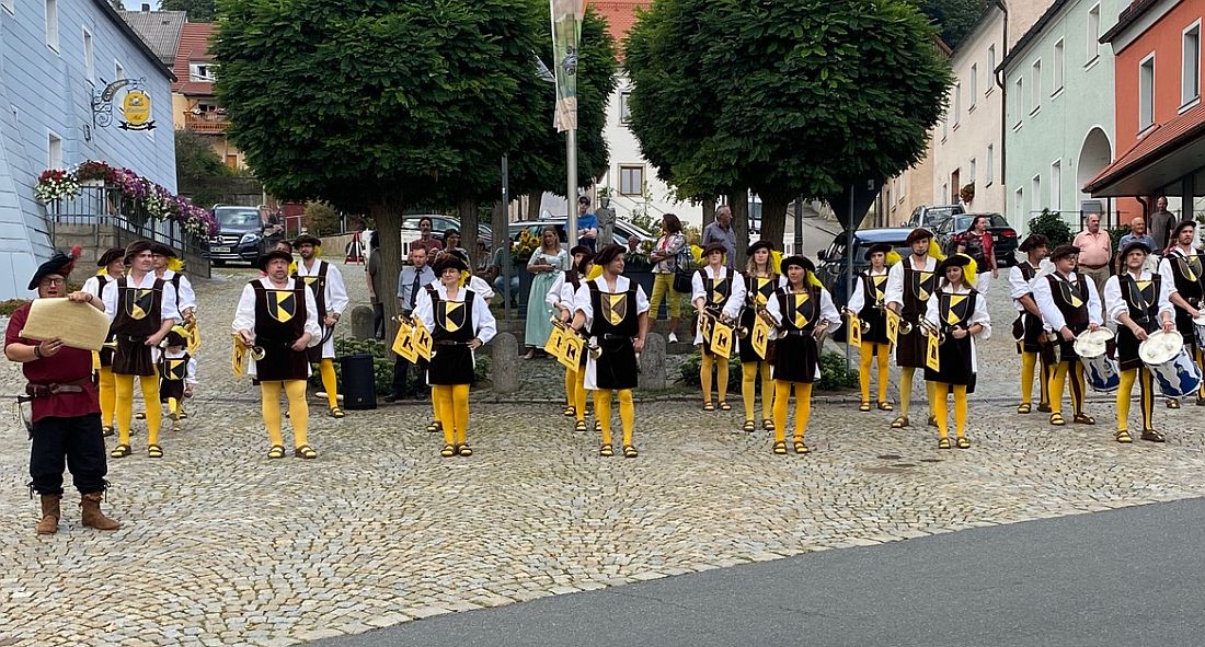 Der anschließende Festzug führte durch die Straßen von Tännesberg wieder zum Marktplatz, wo ein Standkonzert mit der Blaskapelle Gleiritsch den offiziellen Teil der Proklamation abrundete.