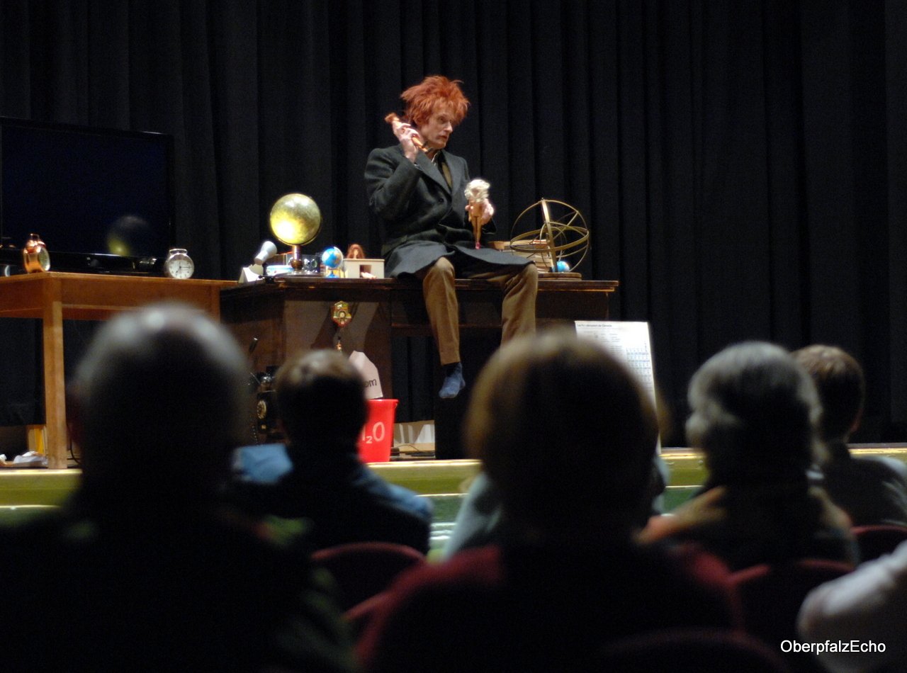 Wöllershof. „Wie, was und warum sind wir? Warum und worum dreht sich alles? Welchen Ursprung hat das Universum?“ Keine leichten Fragen, denen sich Paul Kaiser alias Dr. Wahn im Festsaal des Bezirkskrankenhauses stellt. Der gebürtige Schweizer widmet sich in seinem Soloprogramm existenziellen Fragen.