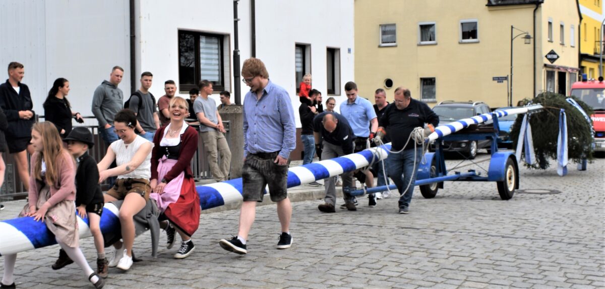 2020 und 2021 wurde kein Frühlingssymbol aufgestellt. Deswegen waren wohl alle “heiß” darauf, am Samstag endlich wieder einen Maibaum via Muskelkraft gen Himmel zu hieven.
