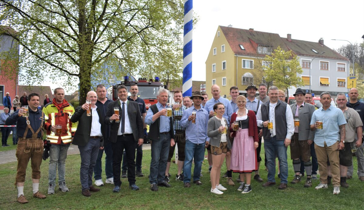Den Feuerwehrlern halfen viele Amerikaner, unter ihnen Brigadegeneral Joseph E. Hilbert und der Garnisonskommandeur Colonel Christopher R. Danbeck sowie natürlich auch Bürgermeister Edgar Knobloch. Nach etwa einer halben Stunde stand der 22 Meter hohe Baum kerzengerade gen Himmel. Das musste natürlich groß gefeiert werden.