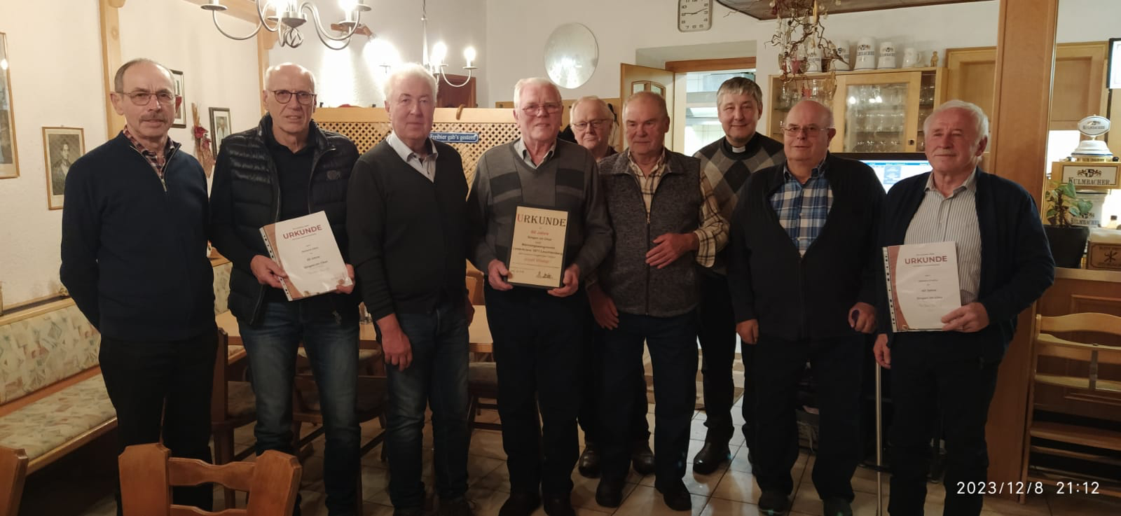 Die Jahresabschlussfeier des Männergesangvereins „Liederkranz“ in Leuchtenberg war dieses Jahr besonders, da mehrere Sänger für ihren ehrenamtlichen Einsatz ausgezeichnet wurden. Im Beisein von Pfarrer Adam Nieciecki hob der Vorsitzende Josef Varnhold hervor, wie wichtig das ehrenamtliche Engagement für das Bestehen des Vereins ist.