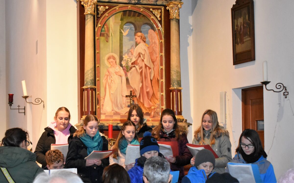 „Schön, dass die Kirche wieder voll ist“, freute sich Gerhard Ruhland nach der Corona-Pause. Zuvor zog der Kinder- und Jugendchor „Cantare et vivere“ mit Kerzen ein. Dazu sangen sie ein passendes Lied: „Zünd ein Licht an“.
