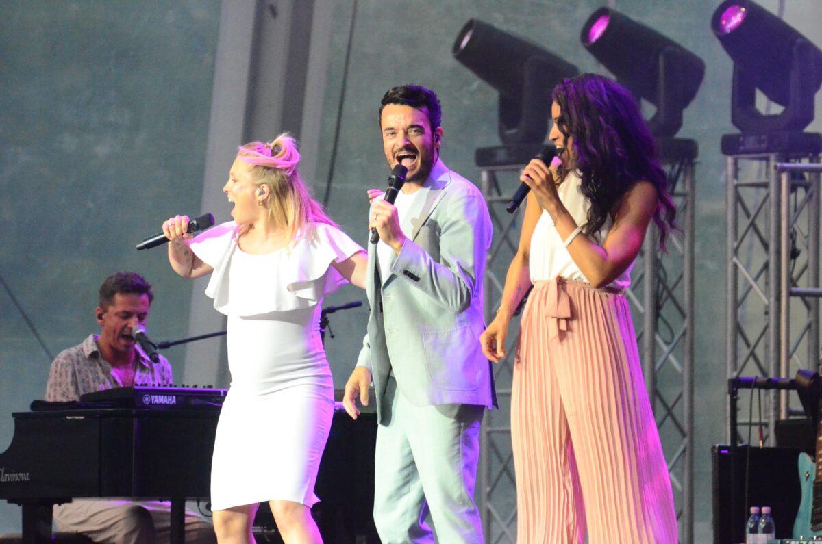 “Auch mit dieser Band, auch in dieser Besetzung.” Er versprach den Fernsehzuschauern ein tolles Sommer- und Latinspecial als Mittelpunkt der TV-Show. Und das probte er mit den mitmachbegeisterten Schlossparkbesuchern schon mal im Vorfeld.