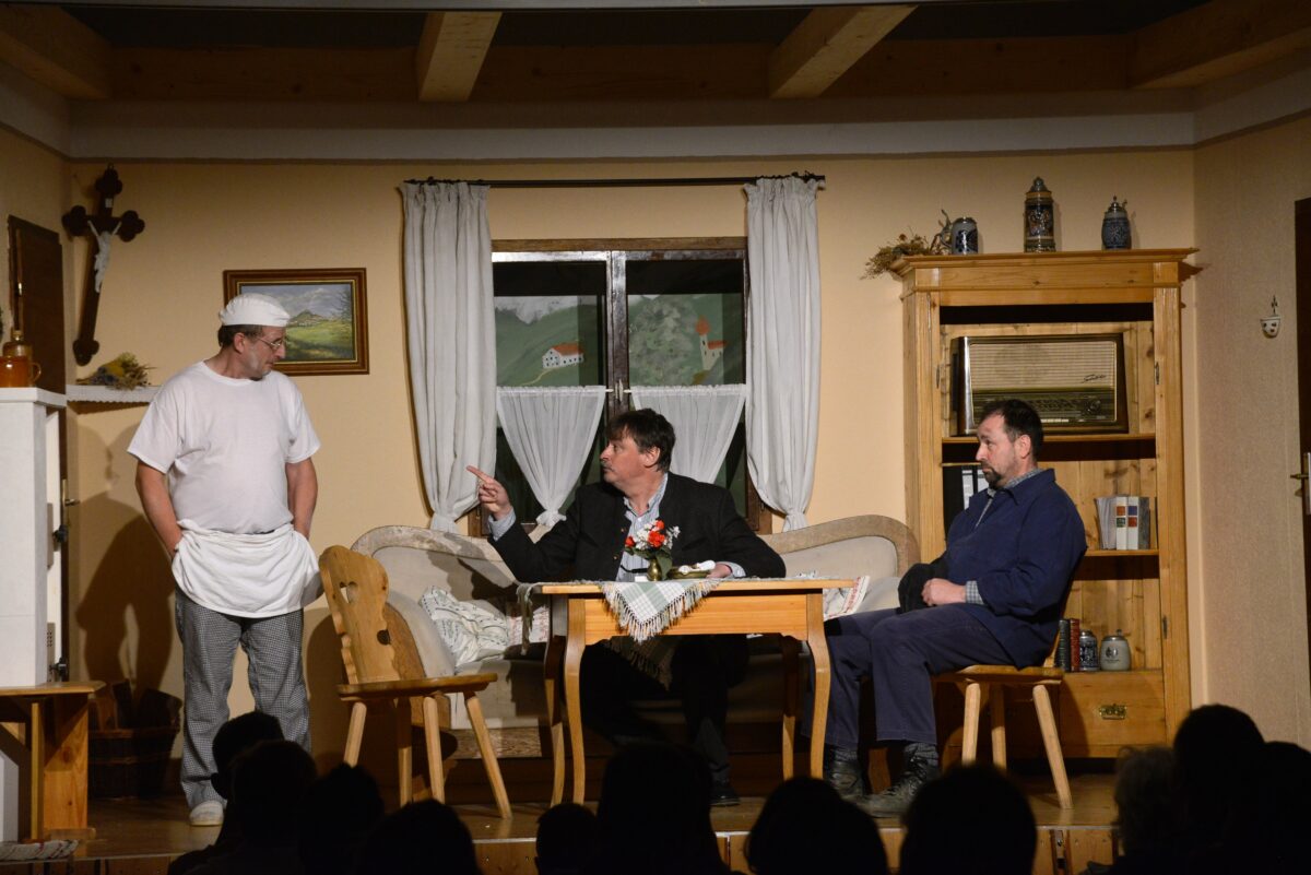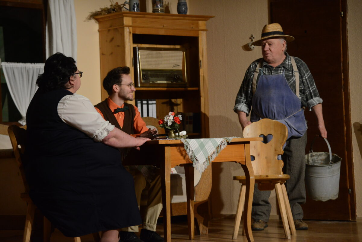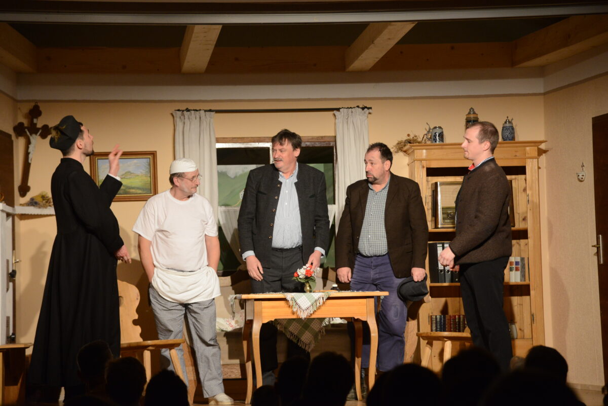 Was alte Liebesbriefe bewirken können, einschließlich „ein bisserl Erpressung“, zeigt Lehrer Furtner. Das Packerl Briefe hat Pfarrer Baptist Heinzinger erhalten. Wer die Briefe geschrieben hat, soll nicht verraten werden, aber den Besuchern im Theater wird’s schnell klar. Im letzten Akt der wunderbaren Komödie kommt die ganze Wahrheit auf den Tisch. Die „drei Dorfheiligen“ gestehen sich gegenseitig wie sie ausgeschmiert wurden.