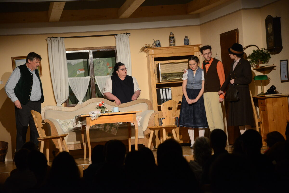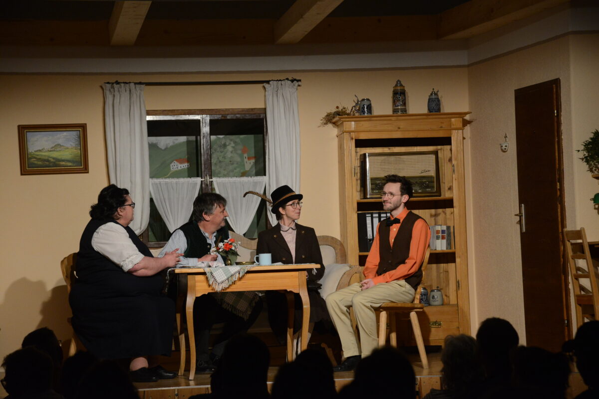 Und als Knecht Hias (Alfons Kastner) einen jungen Mann mit schwäbischem Dialekt angekündigt, wird der in „Doppelfunktion“ je nach dem Interesse der Beteiligten eingestuft. Dominik Schreffl spielt den „Jakob Schwälble“ mit dem schwäbischem Dialekt und seiner Gestik so hervorragend, dass die Besucher stürmischen Szenenapplaus geben. Und er ist der junge Mann, der dank von Verwechslungen letztlich alles geplantes Liebesleben durcheinander bringt. So verliebt sich die schüchterne Mariann (Ann-Cathrin Meier) in den Schwaben. Mutter Babette Schwalble (Johanna Hauer), die vorher noch die vermeintlich Mitgift der Bürgermeistertochter Fanny in Augenschein nahm, merkte wohin die Liebe ihres „Jaköble“ hinfuhrt.