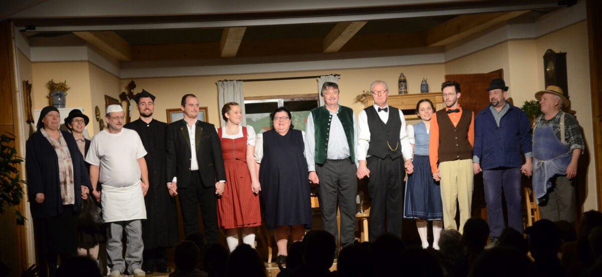 Stürmischer Beifall zum Schluss und nur lobende Worte der Besucher untereinander waren deren Dank für die zweieinhalb Stunden beste Unterhaltung. Trotz der kurzen Auftritte sollte aber Alfons Kastner als Knecht Hias nicht unerwähnt bleiben. Er ist immer noch trotz seiner fast 80 Jahre mit „Leib und Seele“ beim Basalttheater dabei.