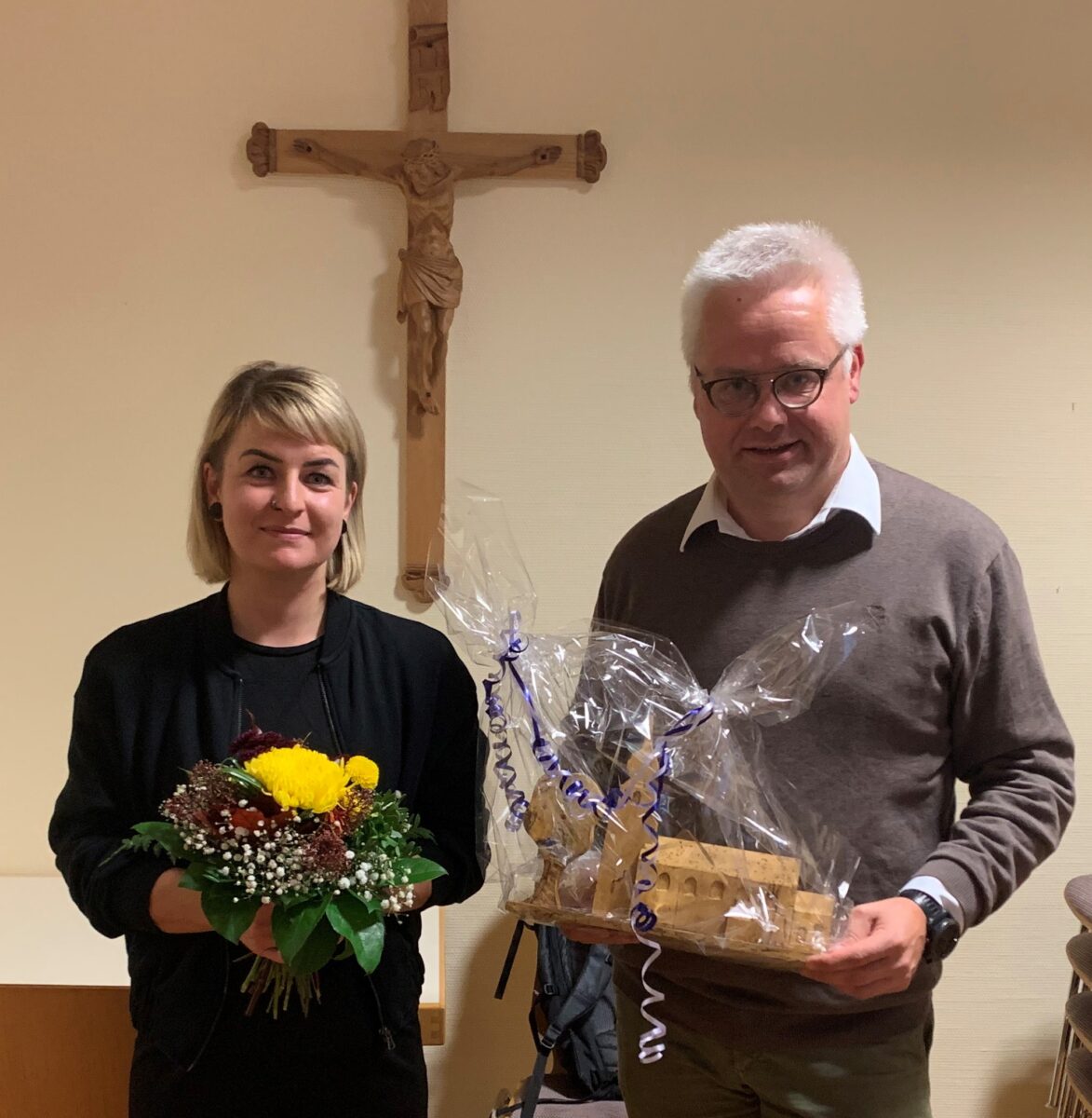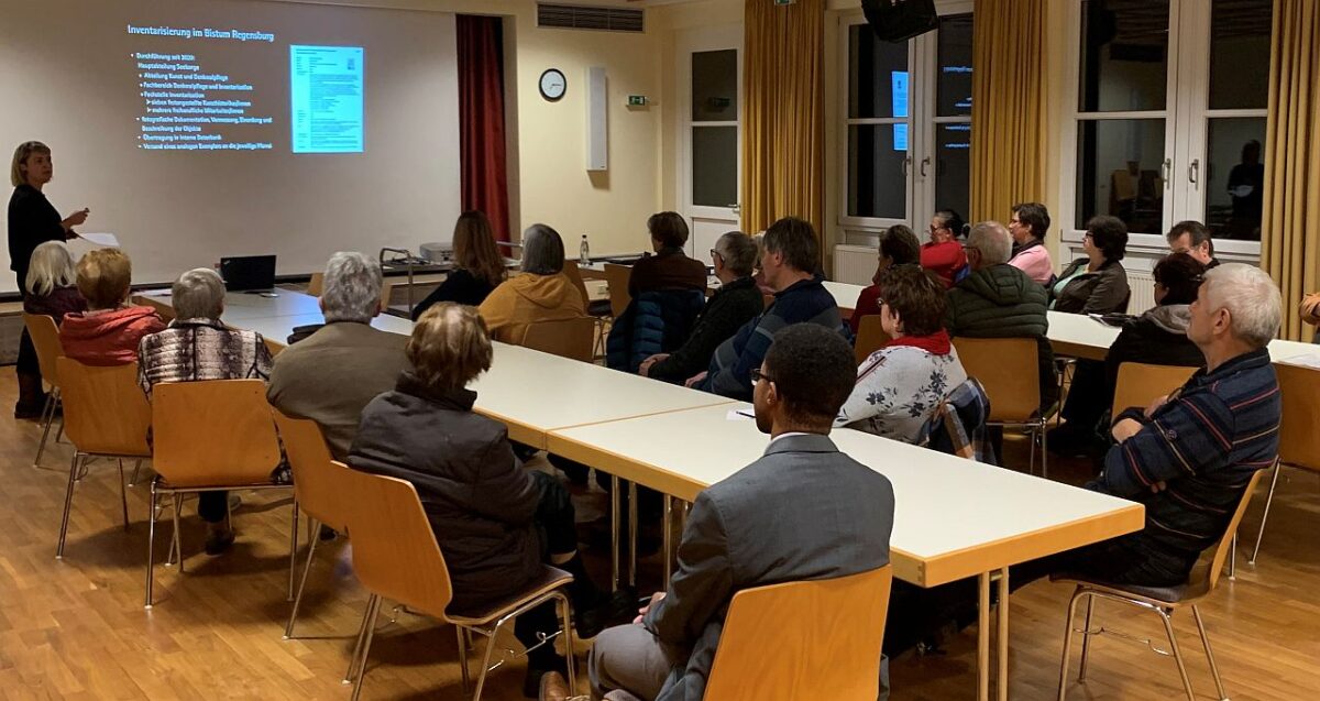 Nachdem die Referentin Auftrag und Ziel der Inventarisierung den rund 25 Zuhörern darlegte, ging sie auf das Bistum Regensburg mit ihren über 2.000 sakralen Gebäuden ein. Pfarrgemeinderatssprecher Roman Melzner dankte am Ende unter dem Applaus der Zuhörer, darunter auch Pfarrer Markus Bruckner und Kaplan Justin Kishimbe der Referentin mit einem Blumenstrauß und einer aus Holz gefertigten Nachbildung der Herz-Jesu-Pfarrkirche, die auch beim traditionellem KAB-Adventsbasar am 19. November erhältlich ist.