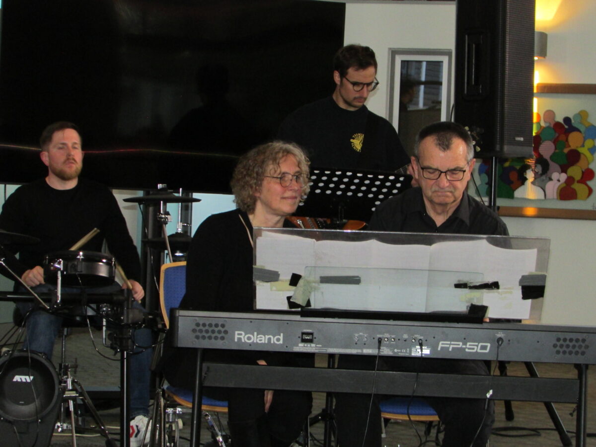 Wolfgang Ziegler dankte noch der Band mit Jenny Meincke am Piano, Werner Riedl am Schlagzeug und Flo Bösl an der Gitarre. Wie er erzählte, reisen einige Chormitglieder aus dem Studium von weiter her an, um mitzusingen. Es wurden noch Partygebäck und Getränke verkauft und Cocktails, auch dieser Erlös geht an die Stiftung Engel für Kinder.