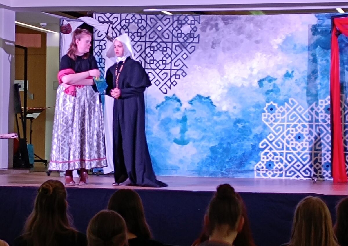 Die Schauspieler Catrin Charmley, Gülin Langbroek, Christopher Shepherd und Jacob Meier begeisterten die Unterstufe mit dem Stück „The Dark Lord and the White Witch“ von Peter Griffith. Die Mittelstufe setzte sich in „Success Stories“, ebenfalls von Peter Griffith, kritisch mit medial vermittelten Rollenbildern auseinander. Auch die Oberstufe kam mit Shakespeares „Comedy of Errors“ auf ihre Kosten.