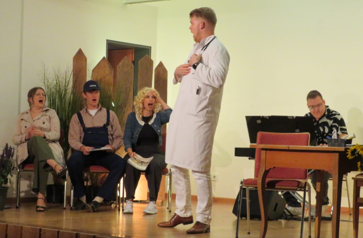 Auch im dritten Programm kombinieren die fünf Darsteller bekannte Operettentitel und Chansons. Zu den gespielten Szenen gab es die dazu passende Musik. Von „Doktor, Doktor“ über „Ohne Krimi geht die Mimi nie ins Bett“ bis „Heut Nacht hab` ich geträumt von dir“ veranschaulichten sie im ersten Teil das Befinden er Patienten. Nach der Pause erfreuten sich die Konzertbesucher an den Melodien „Ich hol’ dir vom Himmel das Blau“ über „Es muss was Wunderbares sein“ bis zu „Brüderlein und Schwesterlein“ an den professionell vorgetragenen Operettenmelodien.