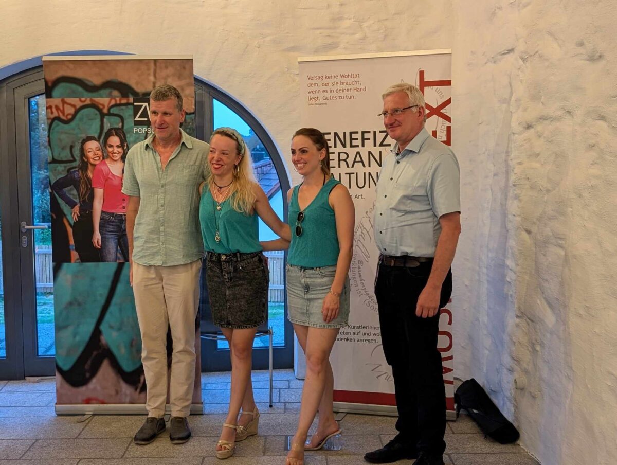 Organisator Wolfgang Göldner, Bürgermeister Johannes Reger und die Sängerinnen. Foto: Karin Rückerl/Bebbo Schuller