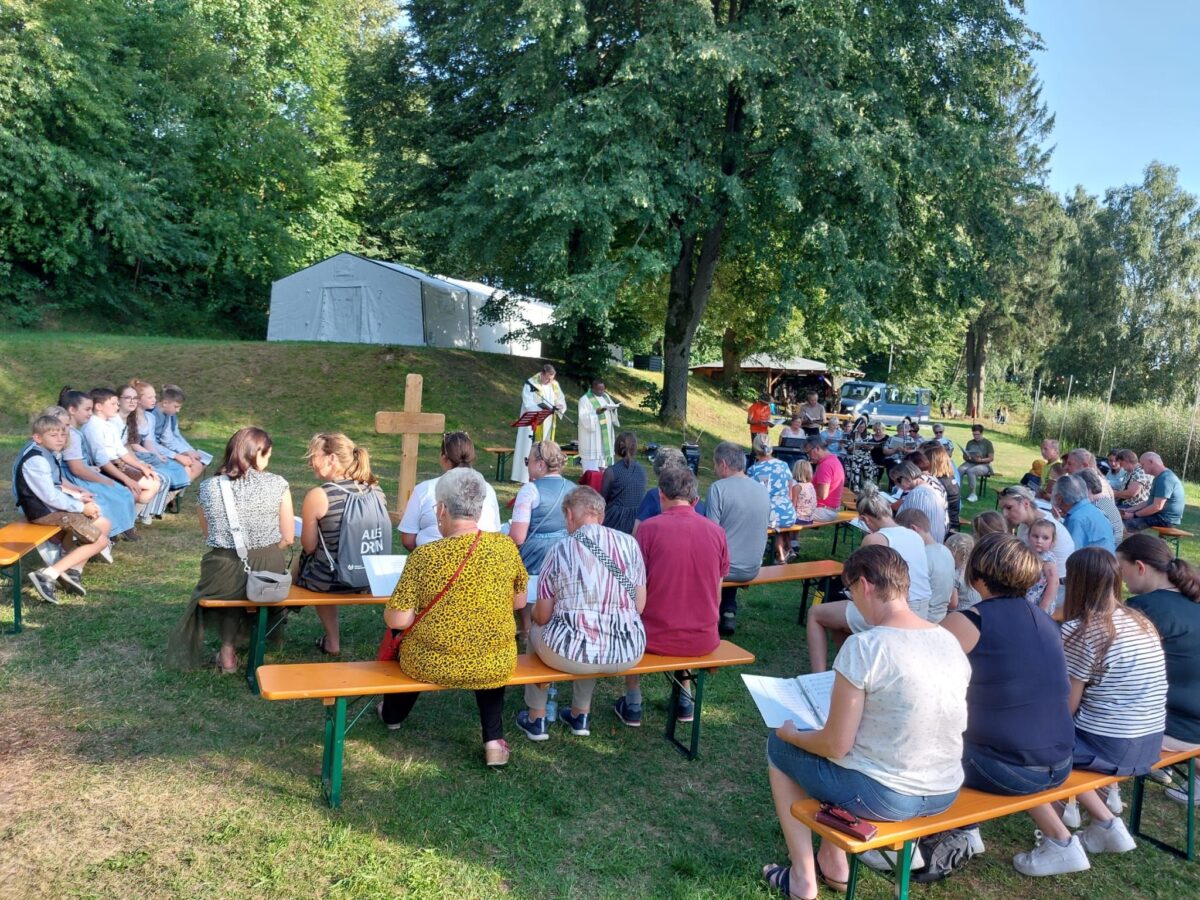 Am Abend waren alle zum Jugendgottesdienst an die Freizeitanlage eingeladen. Da sowohl Pfarrer Martin Rupprecht als auch Pater Felix Meckl gesundheitlich absagen mussten, sprang spontan Pfarrer Udo Klösel aus Moosbach ein. Der Geistliche freute sich über das große Interesse an der Feldmesse und gratulierte zum hervorragenden Heimatfest. Am Abend folgte noch der Vereinstag des TSV mit der Kapelle “Breznsalzer”, die im vollbesetzten Festzelt so richtig Gas gaben und die Massen begeisterte. Der rührige Trupp vom TSV sorgte mit fleißigen Bedienungen für reichlich flüssigen und kulinarischen Nachschub.