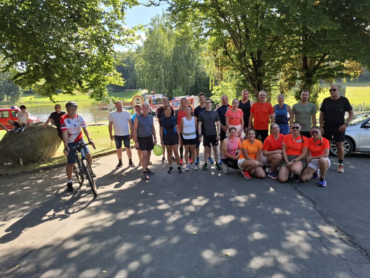 In das Heimatfestprogramm mit eingebunden war am Freitag nach einer Idee von Pfarrr Martin Rupprecht ein Lauf-Event. Nach dem anstrengenden Rundlauf folgte am Freizeitgelände ein Jugendwortgottesdienst. Zum ersten Heimatfestlauf meldeten sich 25 Teilnehmer an. “Die Hitze und das schwülwarme Wetter haben viele vom Mitmachen abgehalten”, waren die Organisatoren Karl Schmid und Herbert Biermeier überzeugt. “Entlang der Strecke haben wir Warnschilder und Hinweisschilder aufgestellt.” Zudem bat Schmid auf den öffentlichen Straßen alle Läufer um Vorsicht und wünschte allen einen unfallfreien Lauf. “Es geht um nichts und es gibt für jeden Teilnehmer von der Gemeinde eine Urkunde und eine Biermarke.” Der Start erfolgte im Beisein von Festleiter Georg Zierer an der Freizeitanlage “Atzmannsee” durch zweiten Bürgermeister Thomas Kleber. Den Lauf hielt Kleber eine passende Gelegenheit, um einige Kalorien vom Festbesuch abzubauen. Das Platzen eines Luftballons war das Zeichen für die acht Damen und 12 Herren zum Start. Zur Absicherung der Läuferinnen und Läufer auf der rund 8 Kilometer langen Strecke setzte sich Karl Grötsch mit dem Fahrrad an die Spitze und Läufer Karl Schmid übernahm das Schlusslicht. Die anspruchsvolle Strecke führte zum Brückenweg und zur Nürnberger Straße, am nördlichen und östlichen Ortsrand um Eslarn und über die Seeschmidstraße und einem Feldweg vorbei an der “Dainsn-Ranch” zum Atzmannsee.