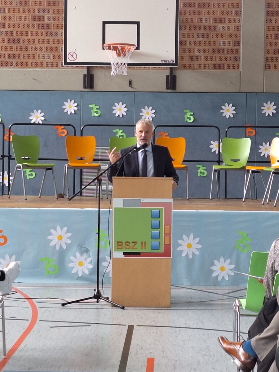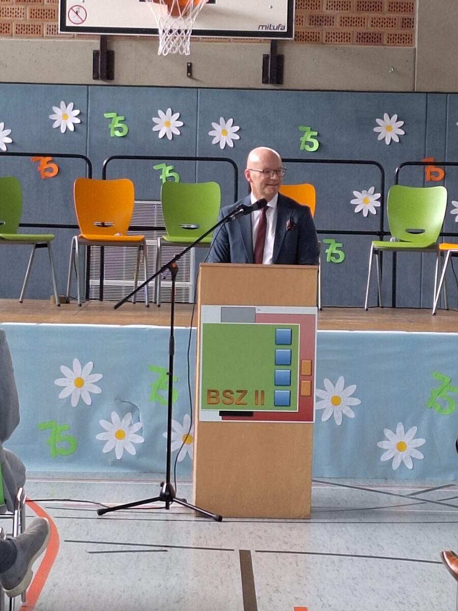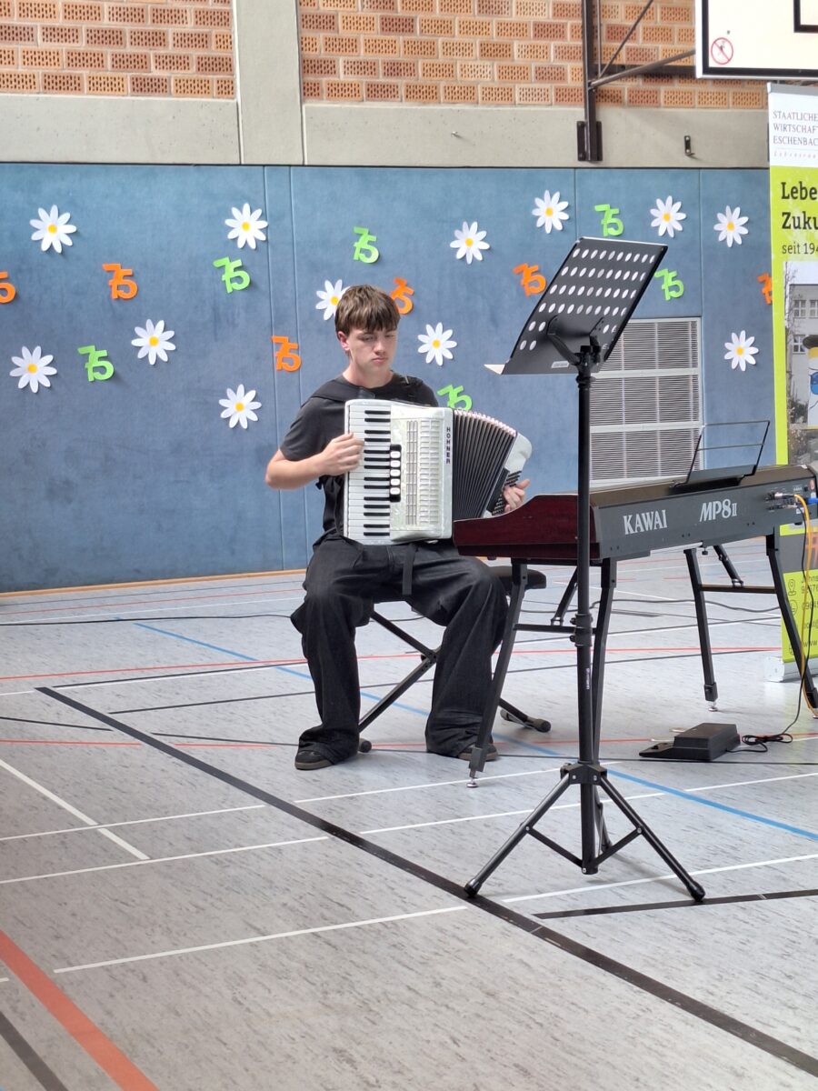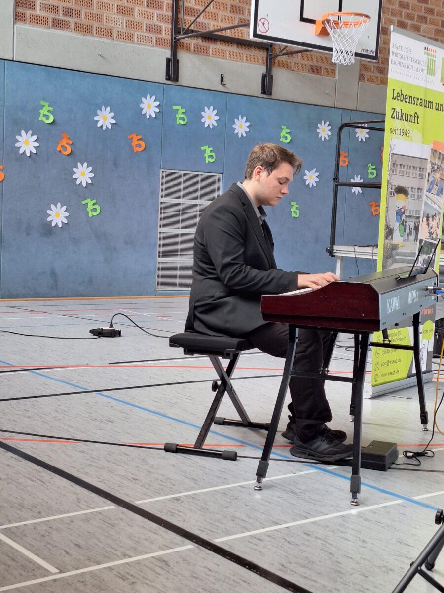 Am Mittwoch feierte die Wirtschaftsschule Eschenbach ihr 75-jähriges Bestehen und lud dazu die gesamte Schulfamilie ein. Den Auftakt des Festakts bildete die beeindruckende Klavierdarbietung „La cascade“ von Nico Biermeier (Klasse 10 Z). Anschließend richtete Schulleiter Oberstudiendirektor Eduard Bauer herzliche Grüße an die versammelten Gäste und äußerte seine Freude über die rege Teilnahme an der Feier.
