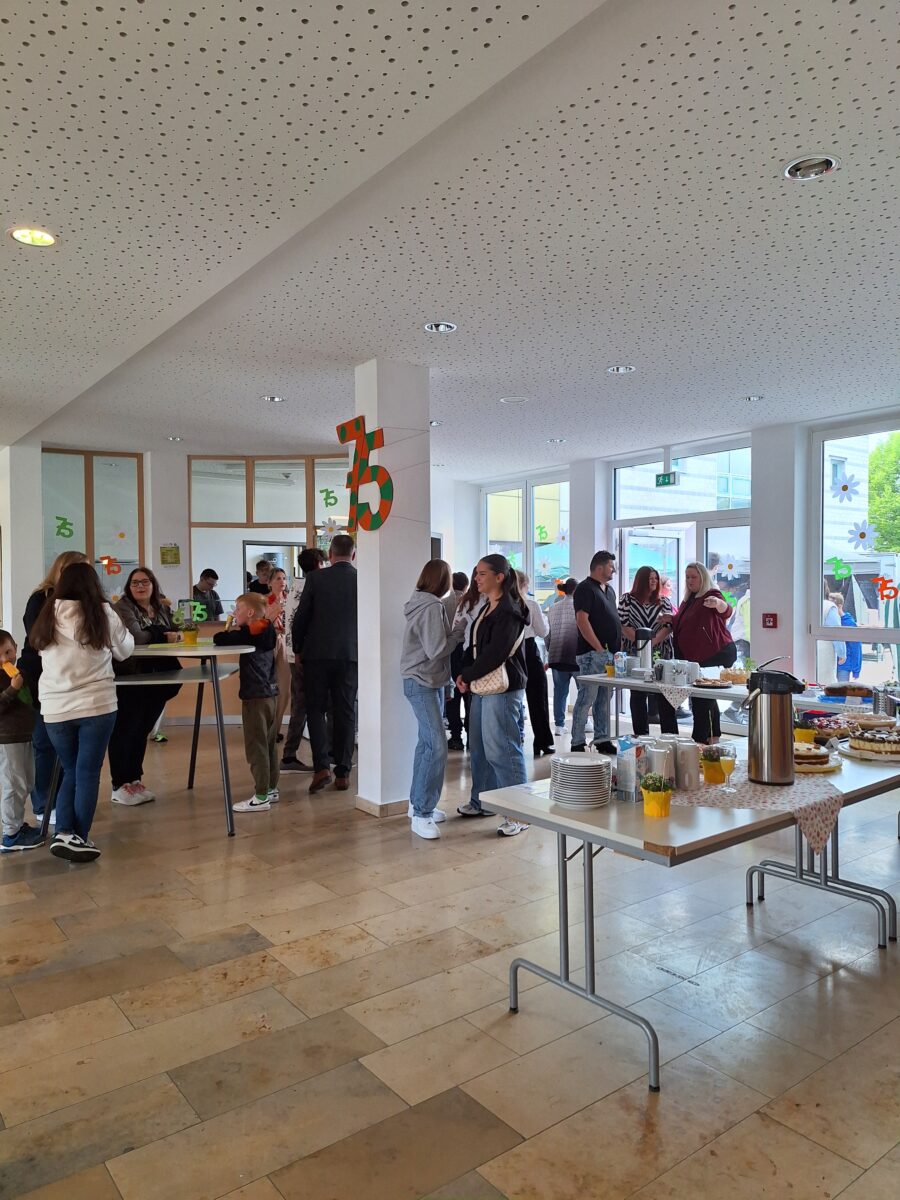 Ab 16 Uhr gesellten sich Eltern, Ehemalige und Freunde der Wirtschaftsschule Eschenbach zu den Feierlichkeiten, um gemeinsam, gestärkt mit Pizzen, Spanferkel, Bratwurstsemmeln sowie Kaffee und Kuchen, das 75-jährige Bestehen zu feiern. Für die kleinen Gäste gab es eine Hüpfburg sowie Kinderschminken.
