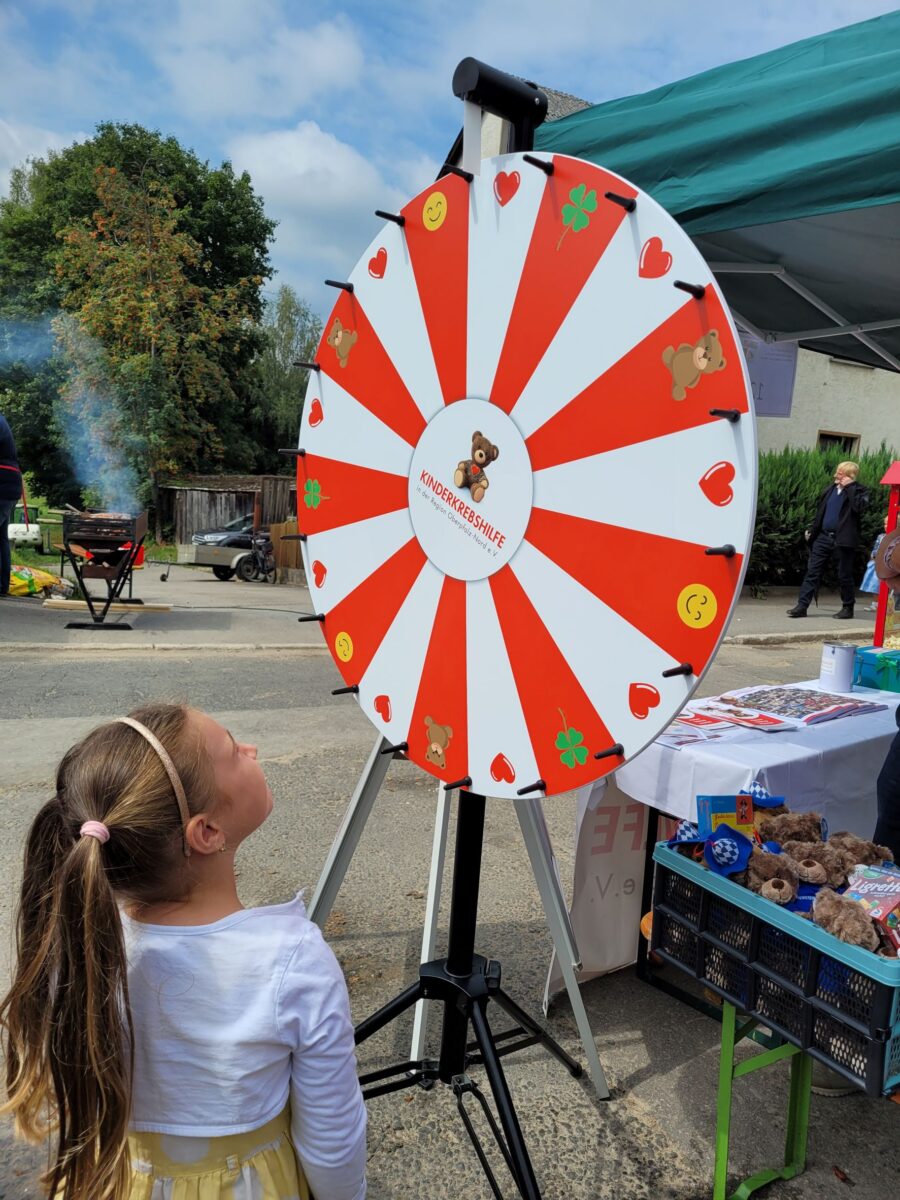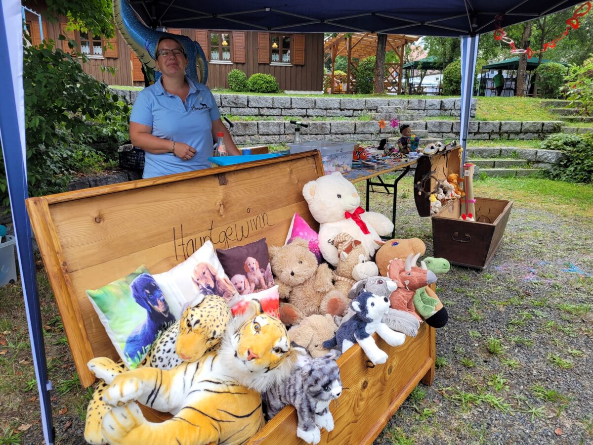 Jede Menge zum Schauen und Betrachten bot die offene Tür bei „Traudl’s Floh- und Trödelmarkt“ oder die „offenen Bierkeller“ am Schlossberg sowie der Vogelpark. Viel Spaß dürften auch die jüngsten Besucher gehabt haben; Kinderkarussel, Losbude ohne Nieten, Ponyreiten, ein echter Wolf namens Heike, Hüpfburg, Glücksrad, Luftballons oder Glitzertattoos sowie fantasievolles Kinder-Makeup zauberten leuchtende Kinderaugen. Hochbetrieb herrschte rund um das Kommunbrauhaus. Bei zünftiger Blasmusik hatten die Ausschankteams und Bedienungen alle Hände voll zu tun und im Kurpark wurde der oder die Marktmeister(in) im Armbrustschießen gesucht.