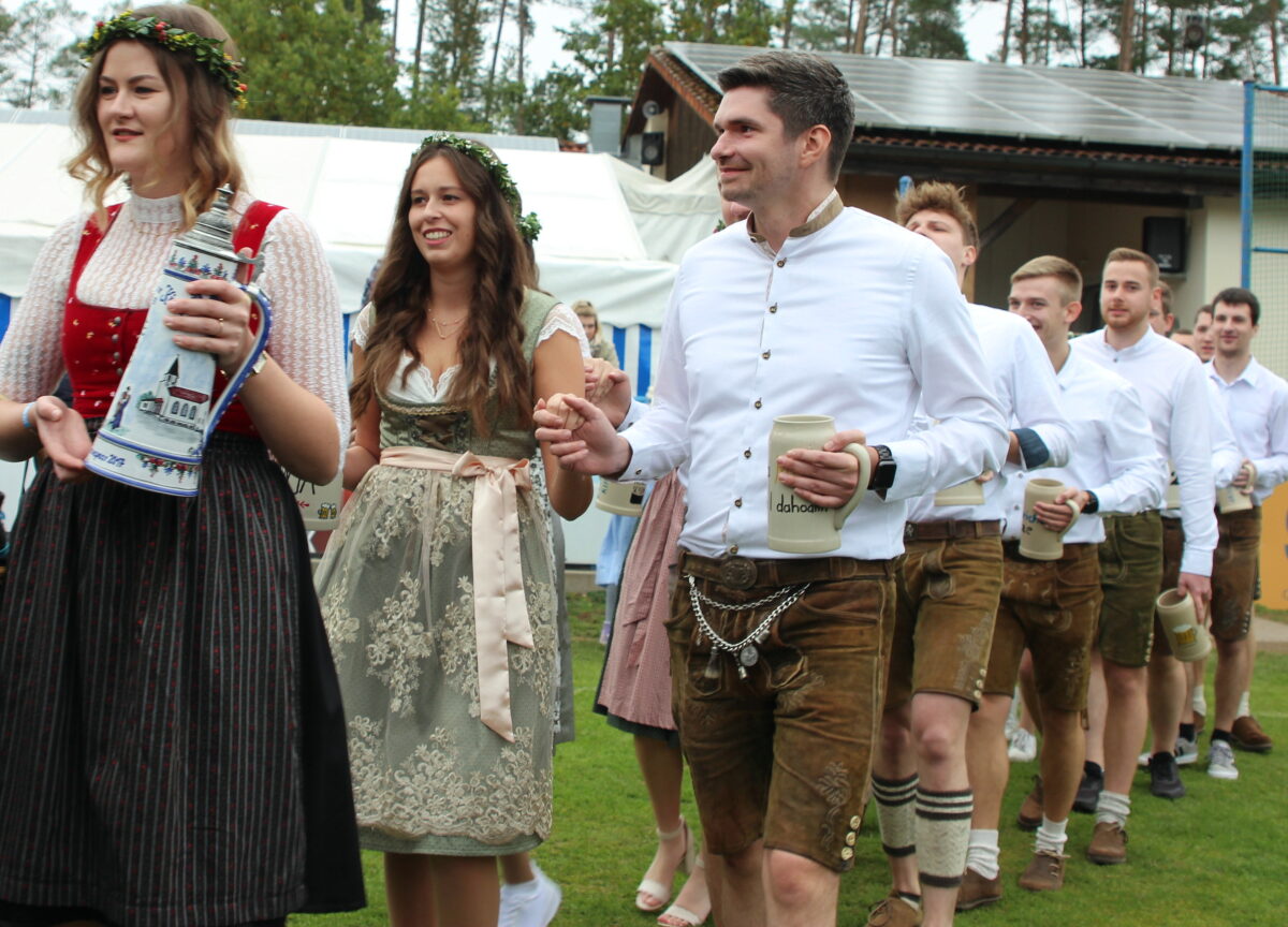 Kirchweih in Etzenricht hat viele unterschiedliche Facetten. Livemusik und große Party, die Jubiläumsausgabe der Kirwa-Olympiade Nummer 10, Mittagstisch und Blasmusik am Sonntag im Zelt, Fußballspiele, Zuschauer bei Auftritten der KiGa-Kinder sowie ein neues Oberkirwapaar, das dieses Jahr Simon Kostial und Saskia Zupfer heißt. Traditionell ziehen die Kirwaleit am Samstag mit Musik und Tanz durch das Dorf.