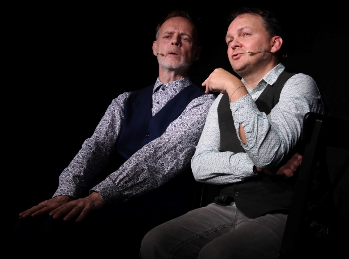 Robert Blöchl und Roland Penzinger sind die Erfinder und Großmeister des Kopfkino-Kabaretts. In ihrem aktuellen Programm „Zeit“ nahmen die beiden das Publikum mit auf eine verrückte Zeitreise, während der die Vorstellungskraft und die Lachmuskeln ordentlich angeregt wurden. Dies geschah wie bei den beiden üblich mit einem Minimum an Requisiten und einem Maximum an Ideen. Blöchinger und Penzinger haben sich als Klinik-Clowns kennengelernt. So ist es nicht verwunderlich, dass sie ihre exakte Schauspielerei mit einer exquisiten Clownerie und Pantomime verbinden.