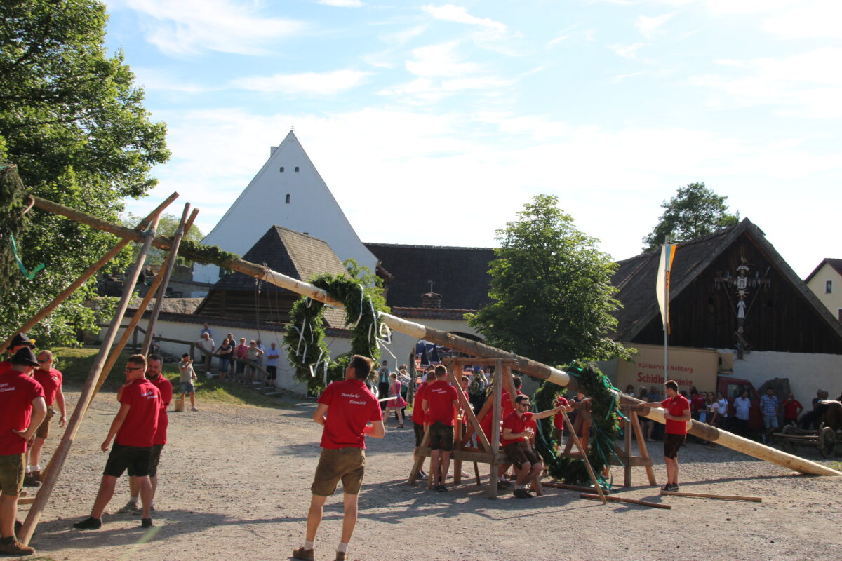 Der Kirwaverein Pfreimd leitet am Samstag, den 25. Juni gegen 18:00 Uhr die Kirwa mit einem Einzug ein. Die zwei Museums – Kaltblüter Leo und Fonse transportieren den von Baron von Lichtenstern bereitgestellten Kirwabaum zum Edelmannshof in Perschen. Es ist kein Leichtes, diesen Baum aufzustellen. Aber gemeinsam und mit vereinter Kraft wird der imposante Stamm gegen 20:00 Uhr feierlich geschmückt aufgestellt sein. Die d´Nowlreiwa sorgen am Kirwasamstag für das eine oder andere musikalische Schmankerl, es soll geschunkelt und getanzt werden.