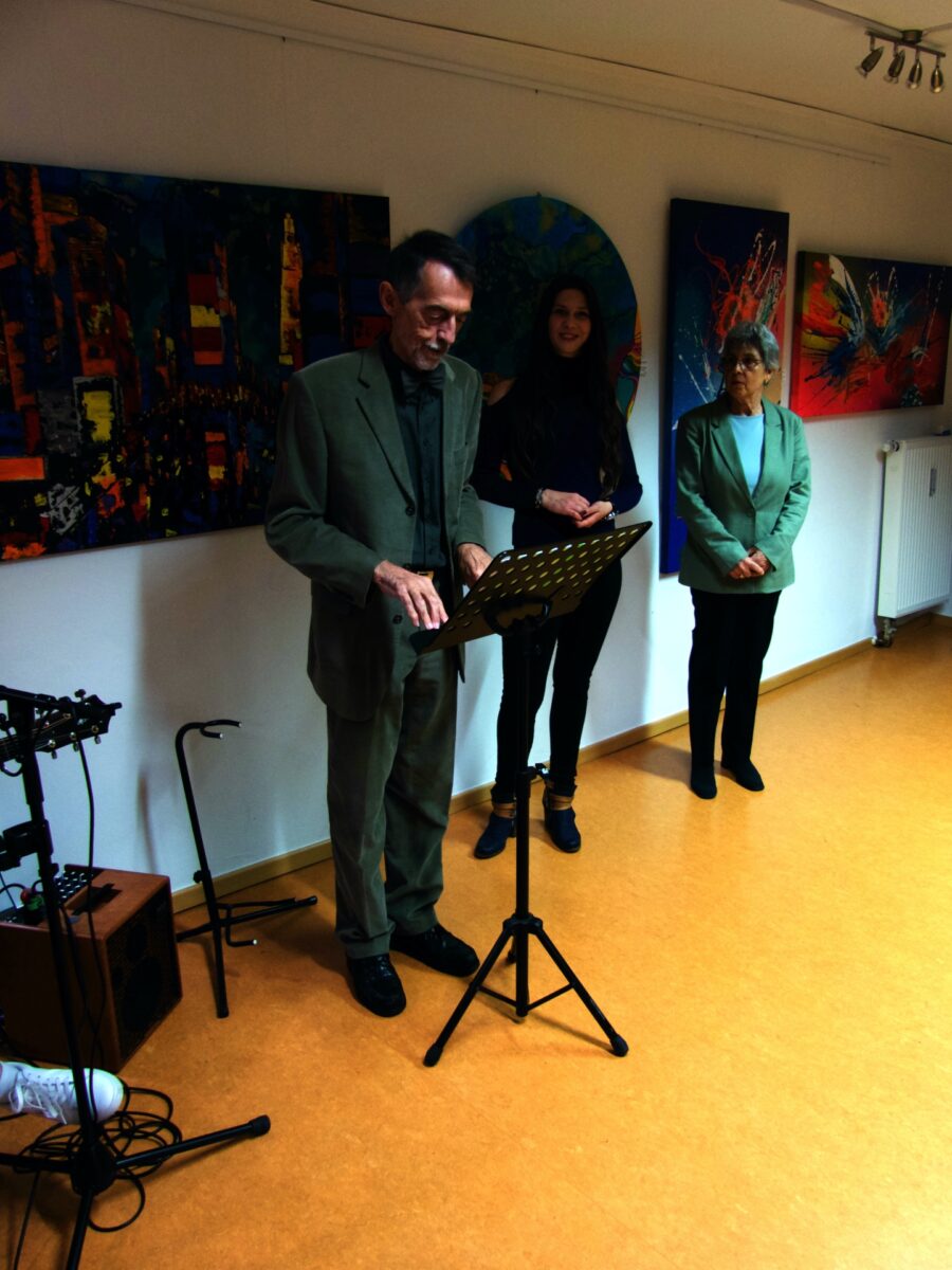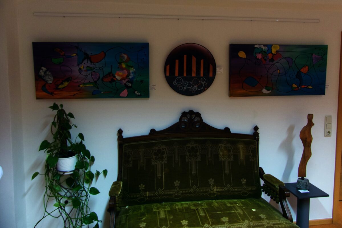 Das alles kumuliert dann zu dem Feuerwerk von Ideen, mit dem sie ihre Ausstellung betitelt hat. So war es auch wenig verwunderlich, dass mit den Lakustiks ein Duo die Vernissage begleitete, das sich auf ganz besondere Interpretationen bekannter Klassiker spezialisiert hat.