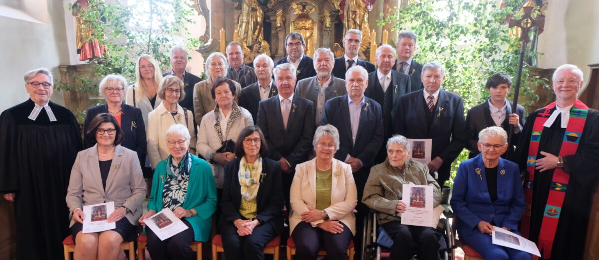 Seine eindrucksvolle Predigt stellte Pfarrer Stolz unter Gottes Wort. Nach Verlesung der Namen durch Vertrauensfrau Silke Scherm überreichte Pfarrer Römischer den Jubilaren Erinnerungsurkunden. Die Gemeinde sang mit Orgel und Bläserchor begleitet: „Nun danket alle Gott“. Danach erteilten die beiden Geistlichen den Segen.