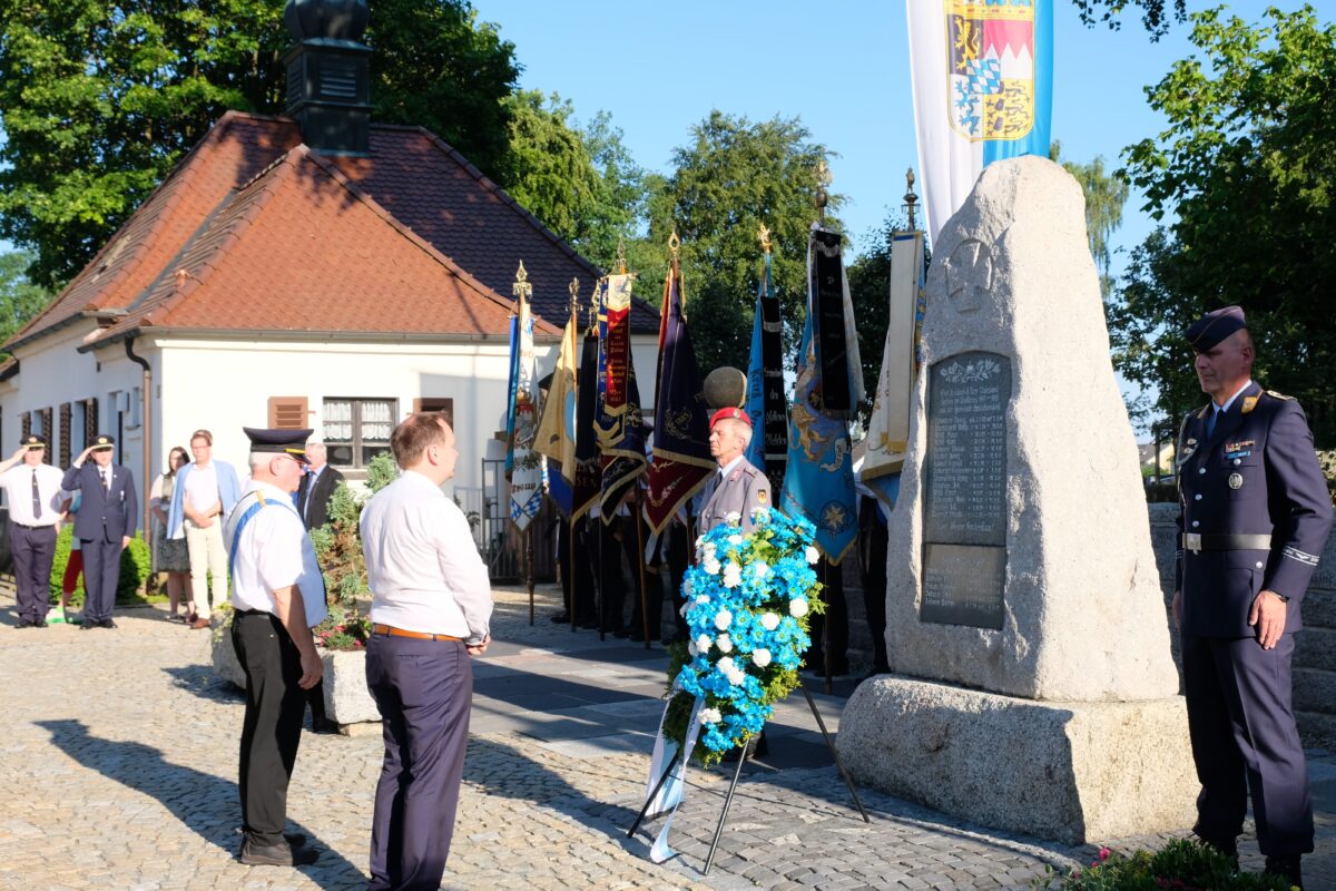 „Wer dauerhaften Frieden will, sollte die Gedenkstätten besuchen“, heißt es schon bei der Gedenkfeier am Kriegerehrenmal. Was hat die Menschheit aus der Barbarei vergangener Kriege und aus dem einhergehenden menschlichen Leid gelernt? Eine Frage, die auch das Jubiläum der Krieger- und Soldatenkameradschaft (SKV) Speichersdorf am Samstagabend begleitete. Schon vor dem Festakt im und rund um das Feuerwehrgerätehaus der Speichersdorfer Wehr betonte SKV-Vorsitzender Edmund Bruckner vor dem Kriegerehrenmal, „das unsere zu tun“, um künftig derartige Katastrophen zu verhindern.