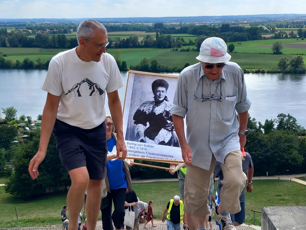 Bei der 20. Friedensfahrradtour Bayern, die am vergangenen Samstag stattfand, setzten sich die Teilnehmer für die Aufnahme der Friedensnobelpreisträgerin Bertha von Suttner in die Walhalla ein. Die Pioniere der Friedensbewegung trugen ein Bild von Suttner zum Ruhmestempel und versuchten, dieses bis zur Anfertigung einer offiziellen Büste vorübergehend dort zu platzieren – allerdings ohne Erfolg, denn die Sicherheitskräfte vor Ort ließen dies nicht zu.