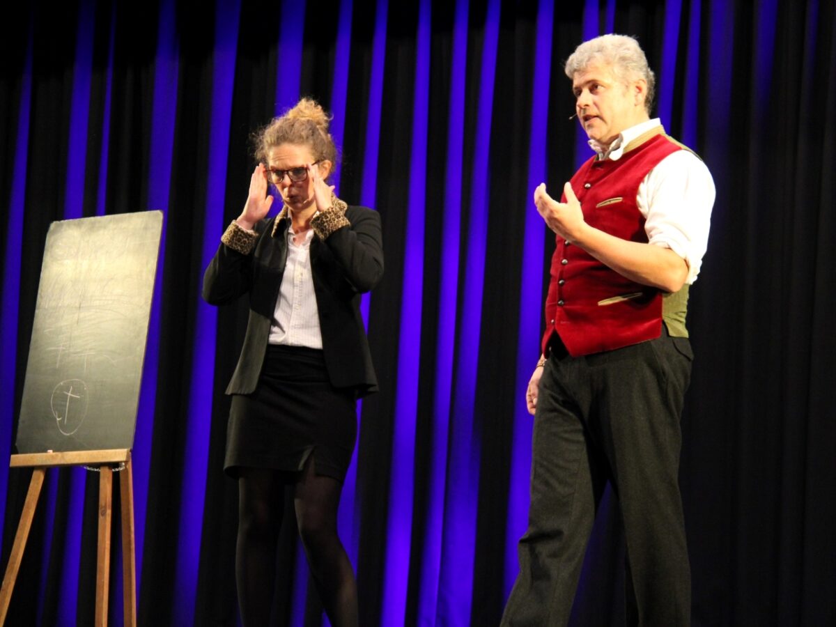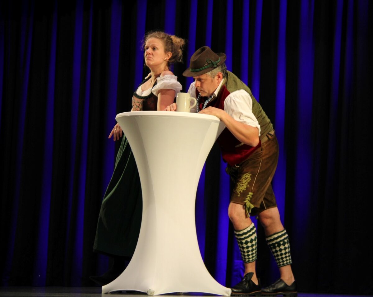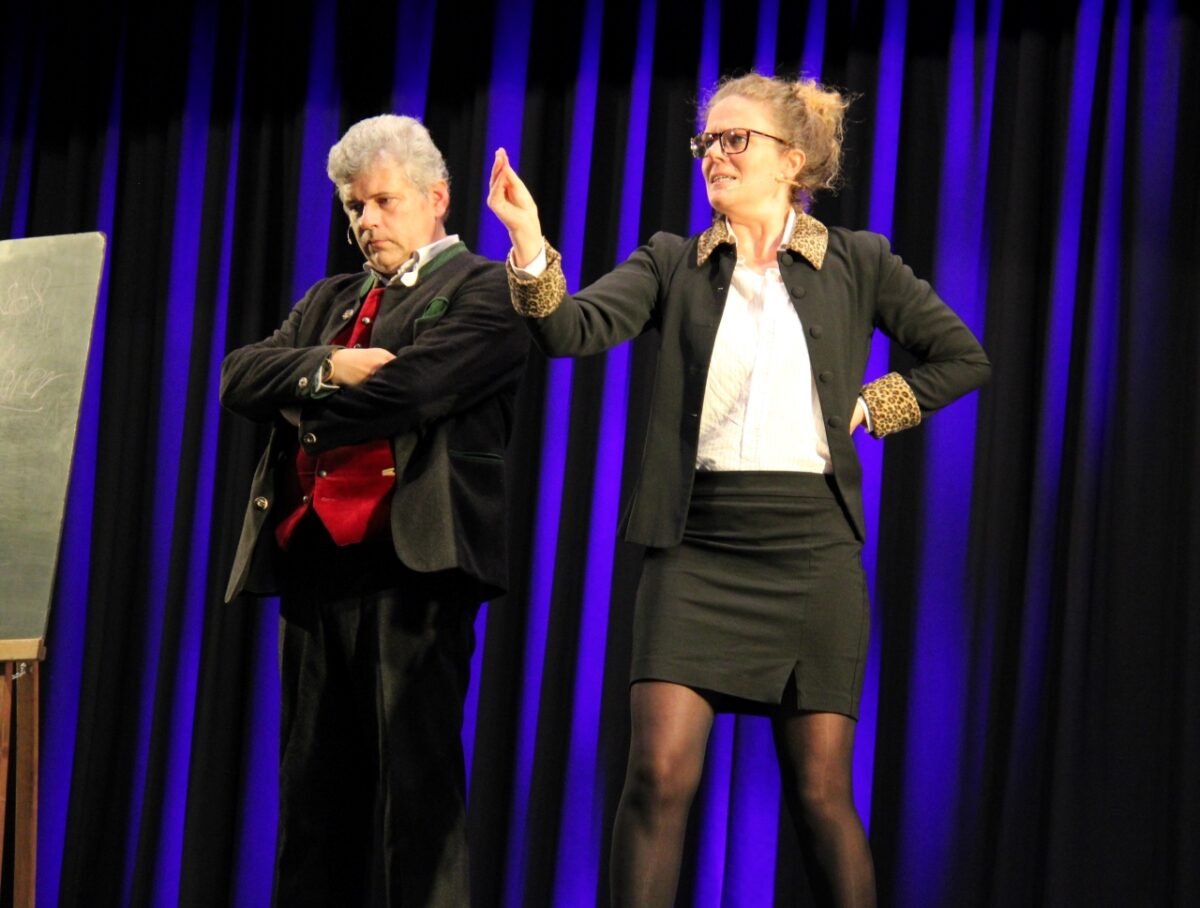 An den beiden Protagonisten auf der Bühne hat es nicht gelegen, dass das interaktive Comedy-Theater „Bayrisch für Anfänger“ das Publikum in der Stadthalle am Sonntagnachmittag nicht von den Sitzen in den mit nur knapp über 50 Besuchern spärlich besetzten Reihen riss. Sie gaben ihr Bestes und überzeugten mit komödiantischem Talent. Der Funke wollte aber an diesem sonnigen Nachmittag einfach nicht überspringen.