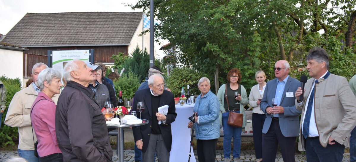 Außerdem steht an der linken Seite ein Holzrelief, das der Oberpfälzer Künstler Günther Mauermann vor zwei Jahren für den Kirchenraum geschaffen hat; es greift das Thema “Lebensweg” auf. Der Schutzpatron der Kirche ist der heilige Laurentius. Der Legende nach soll er nämlich den Märtyrertod durch Verbrennen auf einem Rost erlitten haben. Im Anschluss gab es einen Imbiss mit St. Laurent Rotwein. Die Trauben werden um den 10. August, dem Laurentiustag, reif.