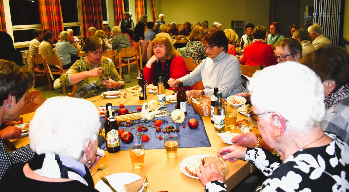 Nach dem Segen, den der Kaplan den Gläubigen erteilte, lud die zweite Vorsitzende des Frauenbundes Maria Marek zu einem gemütlichen Beisammensein in das Jugendheim ein. Dort waren die Tische herbstlich mit Zierkürbissen, Äpfeln und Maiskolben dekoriert.