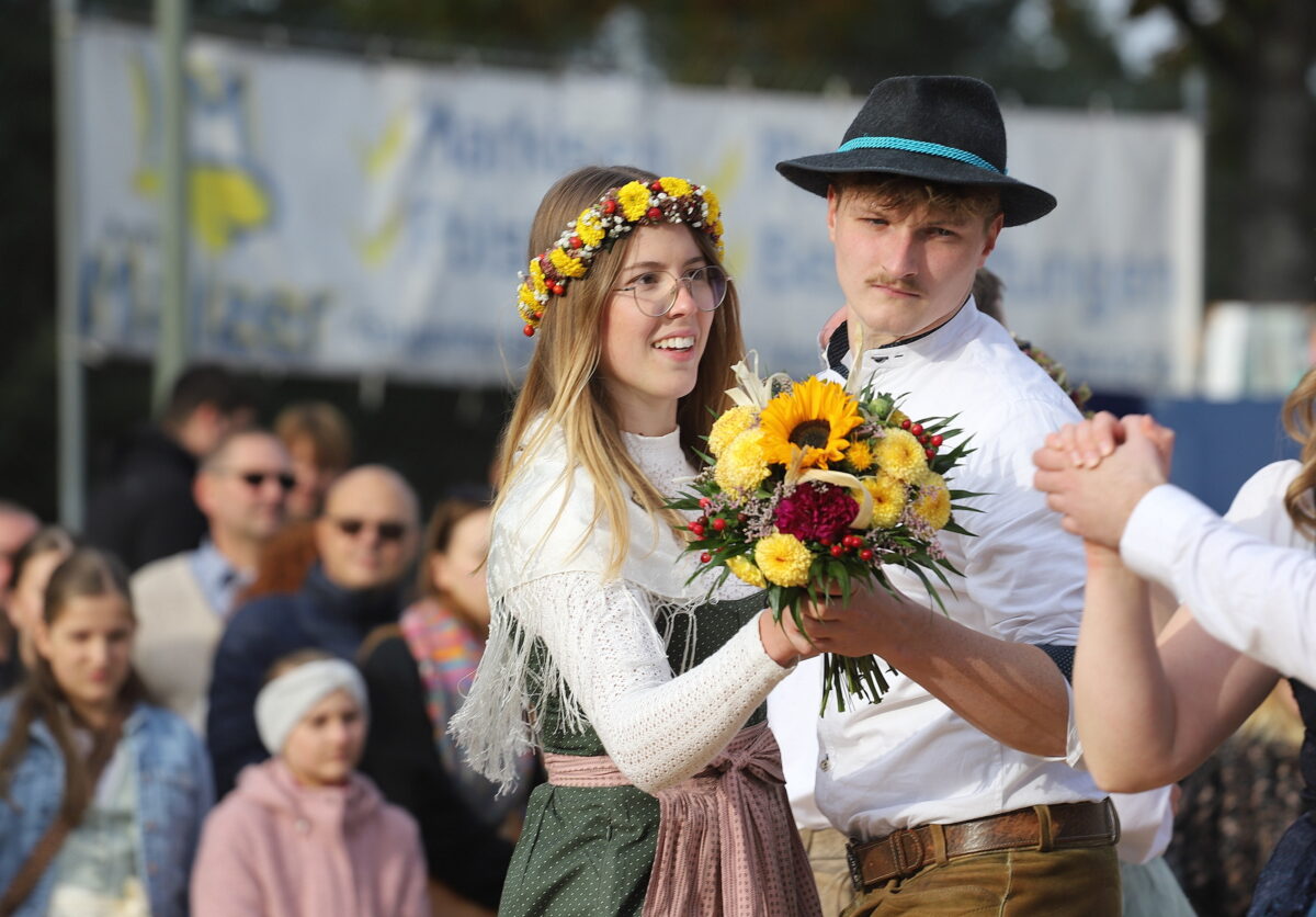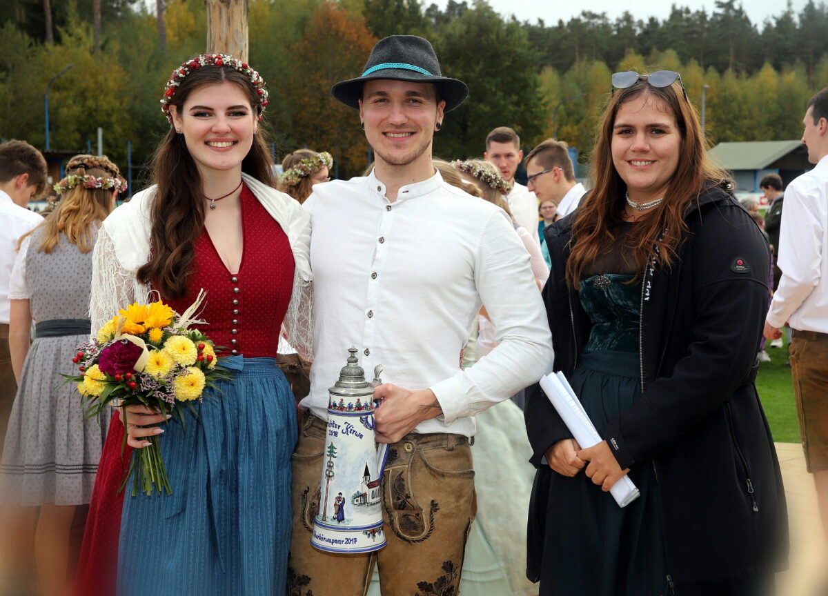 Die talentierten Bambini-Kicker aus Etzenricht und Luhe-Wildenau lieferten die passende Pauseneinlage und nutzten den Sonntagvormittag für ihren Sport. Noch mehr Zuschauer als die Kicker zog am Sonntagnachmittag dann das traditionelle Austanzen des Kirwa-Baumes an den mit einem Tanzboden ausgestatteten A-Platz auf der SVE-Anlage. „Es werden jedes Jahr mehr Leute, die Tanzgruppen haben sich sehr gut und mit viel Fleiß vorbereitet und boten prima Einlagen“, lobte Zwack ihr völlig neu formiertes Team und ein paar hundert Interessierte. Zum Auftakt tanzten die Mädchen und Buben der zwei Kindergärten um den mobilen und passend geschmückten Kirchweihbaum auf dem Podium. Adäquate musikalische Unterstützung lieferten die Brüder Beßenreuther alias „Hohlweglauerer“. Janina Paul und Julian Schmalzl sind das neue Oberkirwapaar.