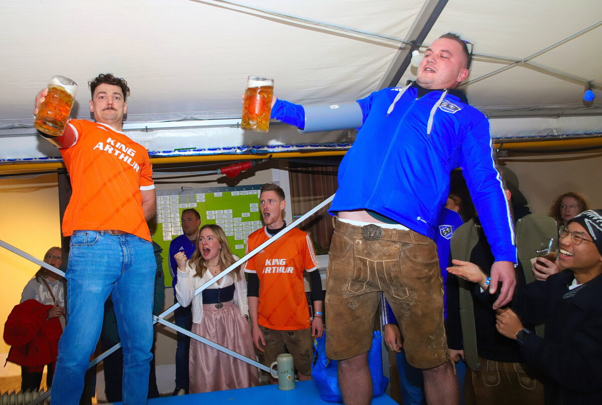 Sechs Spiele, davon zwei Geschicklichkeitsspiele, ein Essensspiel mit Kraut, Bockwurst und Zwiebel, ein Trinkspiel, ein Schätzspiel und das klassische Maßkrugstemmen, bei dem eine Dame namens „Susi“, ausgerechnet aus der Formation der „Alten Säcke“, wiederholt und souverän gewann. “Dieses Jahr waren die Spiele spannend gestaltet, sodass man gar nicht erahnen konnte, wer gewinnt. Jede Runde gab es neue Gewinner, sodass es bis zum Ende spannend blieb”, bilanzierte Ulrich Danzer am Ende der Wettbewerbe und bedankte sich abschließend bei allen freiwilligen Helfern diverser Ressorts für die Unterstützung der Co-Veranstalter Kirwaleit und Förderkreis Fußball des Sportvereins. Gut angenommen wurden auch die Beiträge der Fieranten auf dem vorgelagerten Parkplatz.
