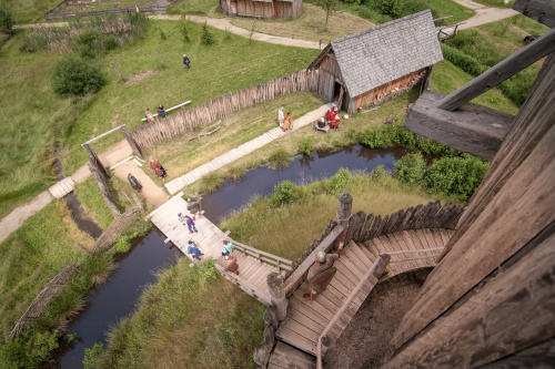 Bei ihrem Rundgang durchstreifen die Gäste in drei getrennten Zeitfenstern die Zeit vom neunten bis zum 13. Jahrhundert. Zu sehen sind unter anderem ein slawisches Langhaus, eine Turmhügelburg mit dazugehörigen Wohn- und Nebengebäuden sowie eine große Herberge, in denen unsere Vorfahren vor rund 1.000 Jahren Unterschlupf fanden.