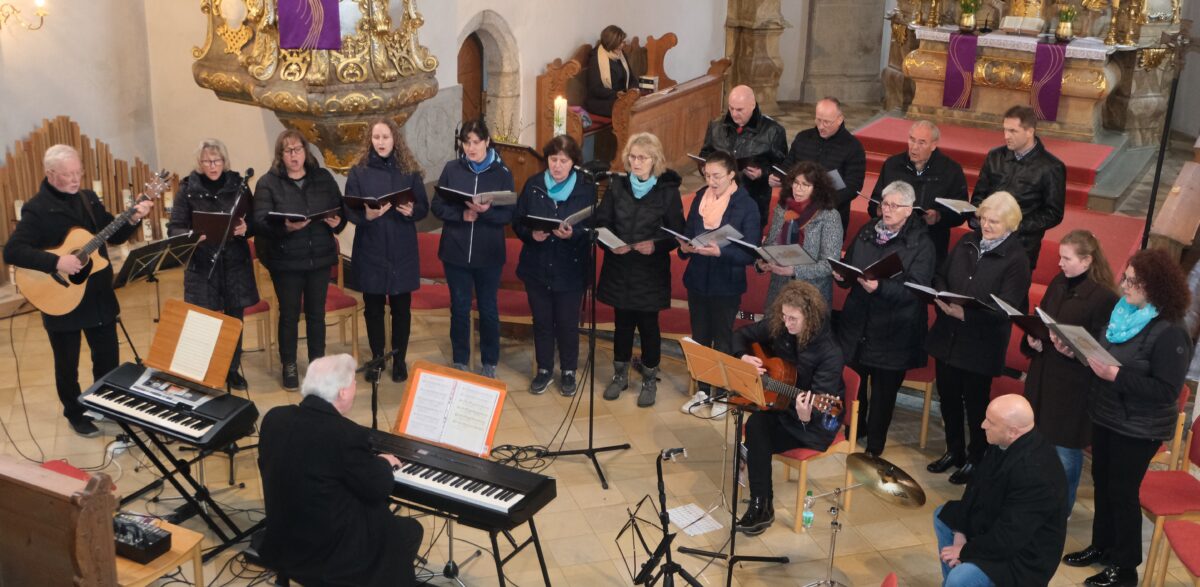 So hat er sich in diesem Jahr für die Aufführung der Flosser Chöre und Gruppen entschieden. Die Kirche stand am Sonntag ganz im Zeichen des Passionskonzerts unter dem Motto „Über-Wunden“. Mitwirkende waren die „Arche Musica“, der Kirchenchor, die Kirchen-Combo mit Annika Balk und Franco Ricciardi. Pfarrer Wilfried Römischer (Gitarre und Gesang) und seine Frau Erika sprachen die Texte. An der Orgel und am E-Piano spielte Kantor Andreas Kunz. Eine bewegende musikalische Stunde. Die Passion von Jesus hält uns Wunden und Leiden vor Augen, aber auch die Kraft der Liebe, die Wunden verwandeln und überwinden kann.