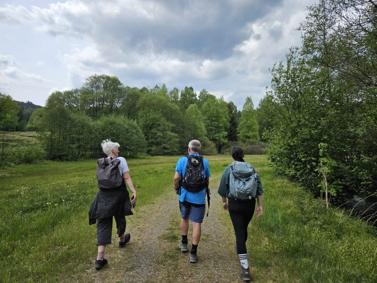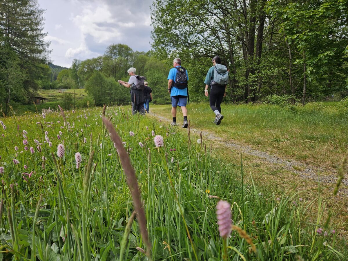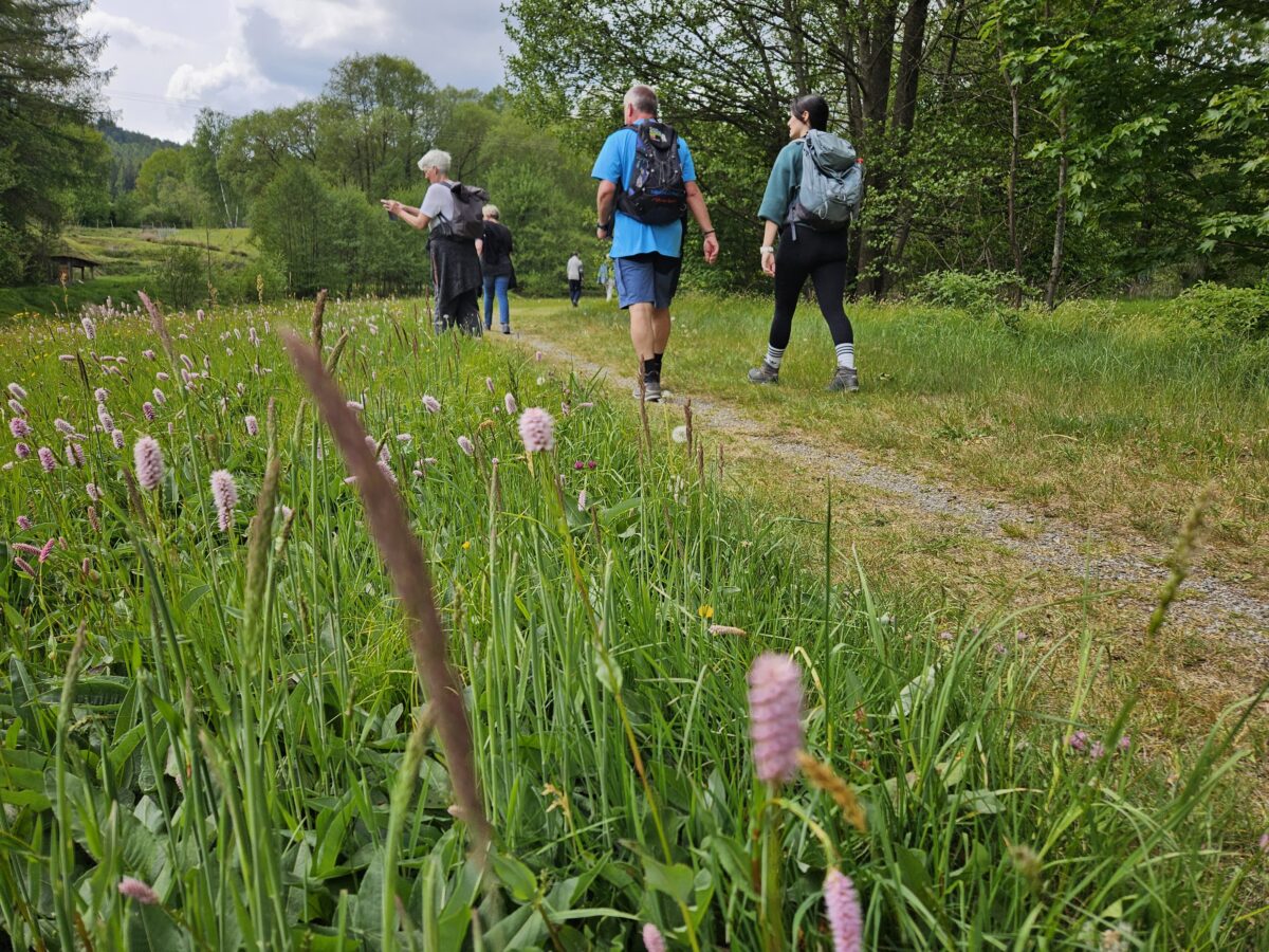 Am vergangenen Mittwoch nahmen knapp 40 Wanderbegeisterte an der ersten Wanderung des Wandersommers auf dem Glasschleifererweg teil. Bei idealen Wetterbedingungen führte die Route von der Hagenmühle über den Sieben-Insel-Weiher bis zur Gehenhammer Mühle.
