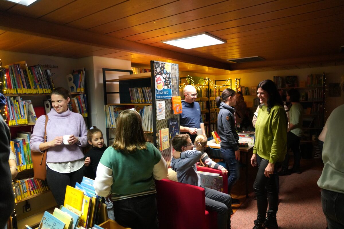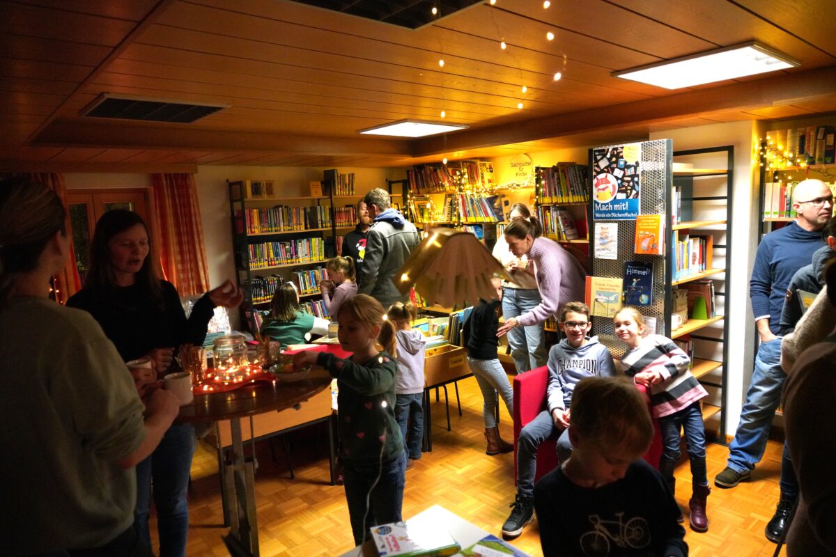 Richtig kuschelig machten sich die Lesefans jeglichen Alters daran, in gemütlicher Atmosphäre bei diesem „Offenen Büchereiabend bei Kerzenschein, Glühwein und Knabbereien“ sich über neue Bücher und Tonies zu informieren. In so manchen Kuschelecken hatten es sich junge Leseratten gemütlich gemacht und zwischendrin klingelte es gemütlich beim „Halligalli-Spiel“, was dem Abend noch einen besonderen Flair gab.