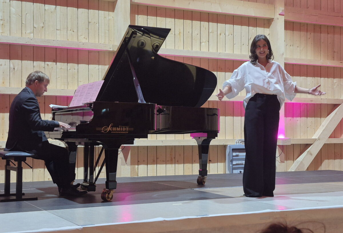 Als Musetta in Puccinis “Quando m’en vo” glänzte Yingzi Xia (China/München). Mit sicherem Auftreten, tänzelnder Gestik und einem Lächeln, das die Männerblicke geradezu heraufbeschwor, verkörperte sie Musettas Koketterie. Dass sie am Ende mit Bellinis “Qui la voce” den Abend beschloss, war folgerichtig: hier verband sie lyrische Süße mit dramatischer Wucht, bis die Scheune förmlich bebte. Eva Degitz (Heidelberg/Saarbrücken) brachte mit Haydns “Nun beut die Flur” einen frühlingshaften Moment in den Herbstabend. Klar, hell, fast jugendlich sang sie vom Aufblühen der Schöpfung – ein wohltuender Kontrast zu den schweren Opernarien.