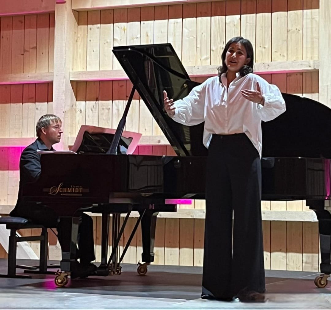 Maria Shebzukhova, in schwarzer Hose und weißer Bluse, zeigte große Bühnenpräsenz. Mit Mozart und später Gounod war sie nicht nur Stimme, sondern ganze Figur: ihre Mimik funkelte, ihre Bewegungen waren klar, präzise, einstudiert – und doch sprühend vor Energie.
