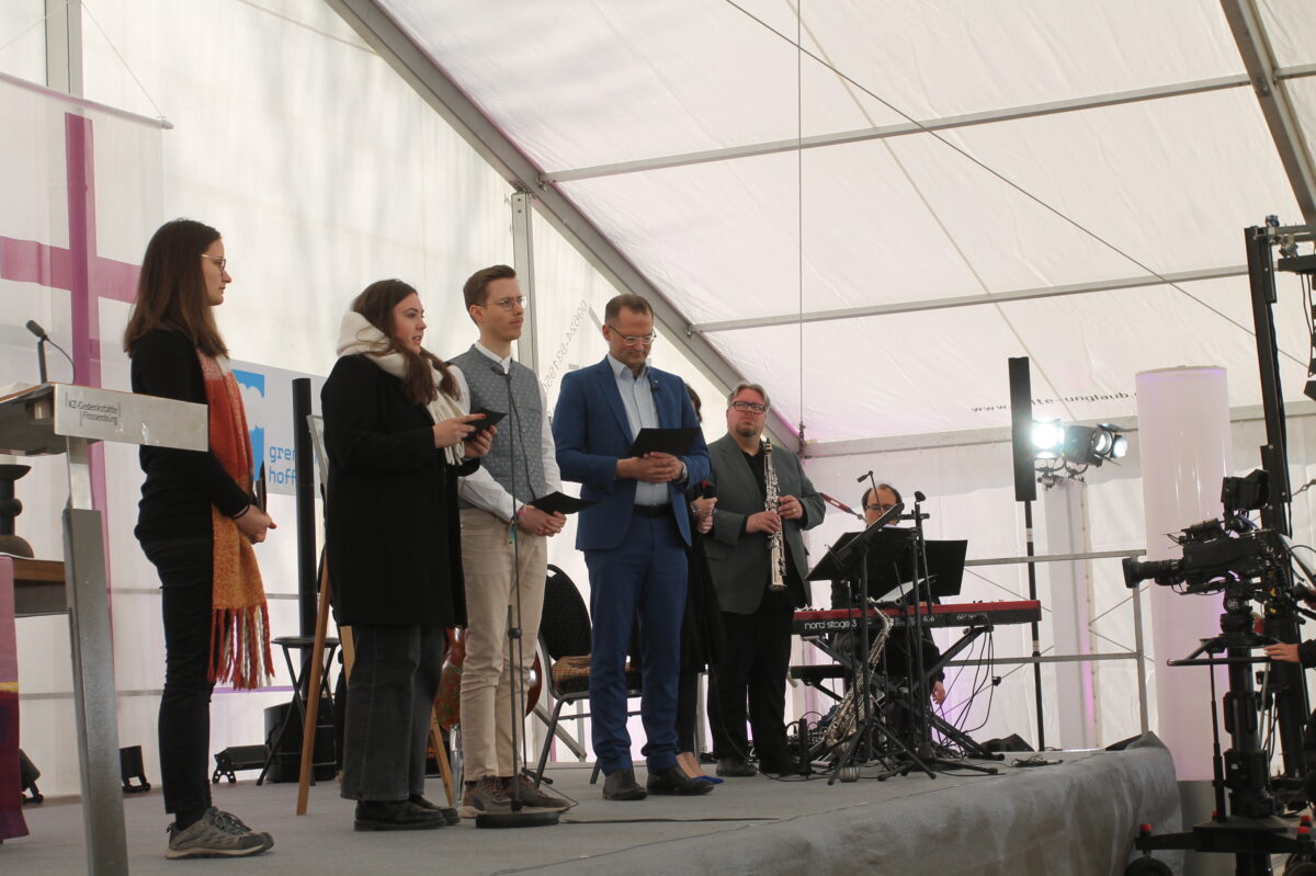 Den Gottesdienst bereicherten Prof. Dr. Florian Höhne mit Schilderungen aus Bonhoeffers Leben und Denken sowie Jugendliche aus Deutschland und europäischen Ländern mit Worten zum Thema „Hoffen“. Die musikalische Leitung lag in den Händen von Uwe Steinmetz. Dazu kamen Victor Alcantara und Michael Straube sowie die Sängerin Maria Helmin.