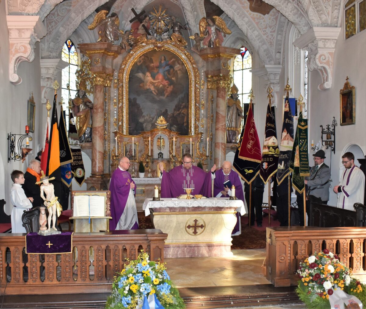 Der Friede ist jedoch ein kostbares Gut und der Krieg in der Ukraine erinnere daran, wie zerbrechlich der Friede sein kann. Anita Heßler appellierte an alle: “Es ist unsere Verantwortung für die künftigen Generationen, uns für den Frieden einzusetzen.” Auch im Gottesdienst, den Pfarrer Daniel Fenk mit den beiden Ruhestandsgeistlichen Hans Bayer und Ludwig Gradl in der Alten Pfarrkirche feierte, riet Pfarrer Fenk zu Wachsamkeit auf. Der Friede sei als Aufgabe zu sehen.