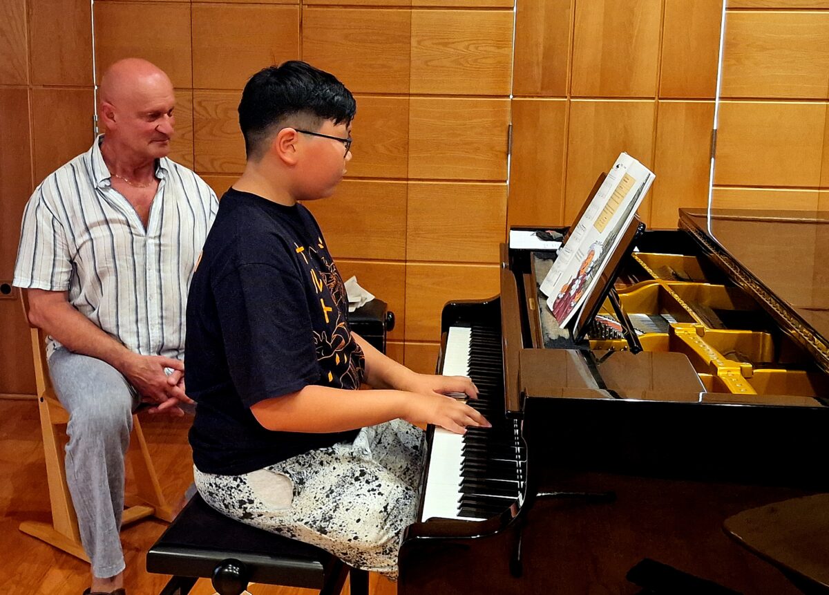 Dann wechselten Evelyn Kulikaev ans Klavier mit einem „Wiegenlied“ und dem „bunten Schaukelpferd“, Marlene Mühlbauer in der Unterstufe mit einer „Kleinen Polonaise“und dem „Wilden Ritt“, ehe Chingis Batsukh den Schluss übernahm. Er hatte das „kleine Menuett“ auf dem Notenblatt, spielte „Ragtime“ und „Endlich in Wien“ von W. A. Mozart. Die Zuhörer hatten ihre Freude und die Eltern waren stolz, weil alles klappte – es gab viel Applaus.